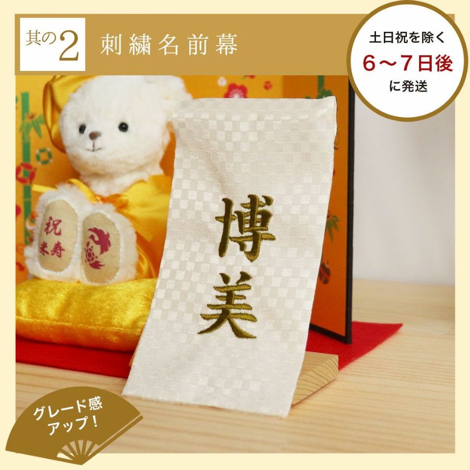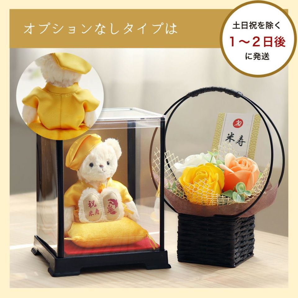 テディベアの横に立てて飾れる小さな色紙。 お孫さまが書いた似顔絵や家族からの手書きメッセージを、米寿ベアに添えて飾ることができます。 別ページの商品を一緒にご購入ください。