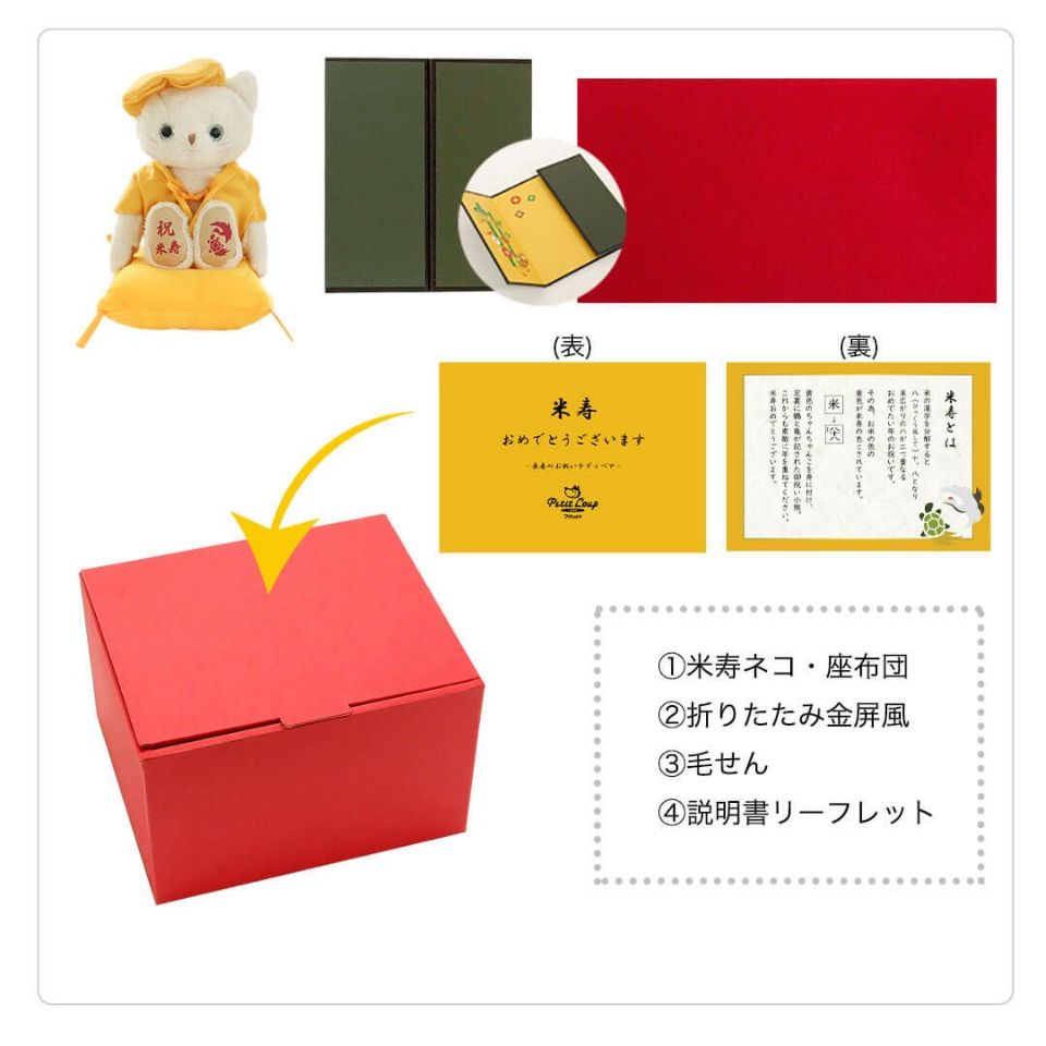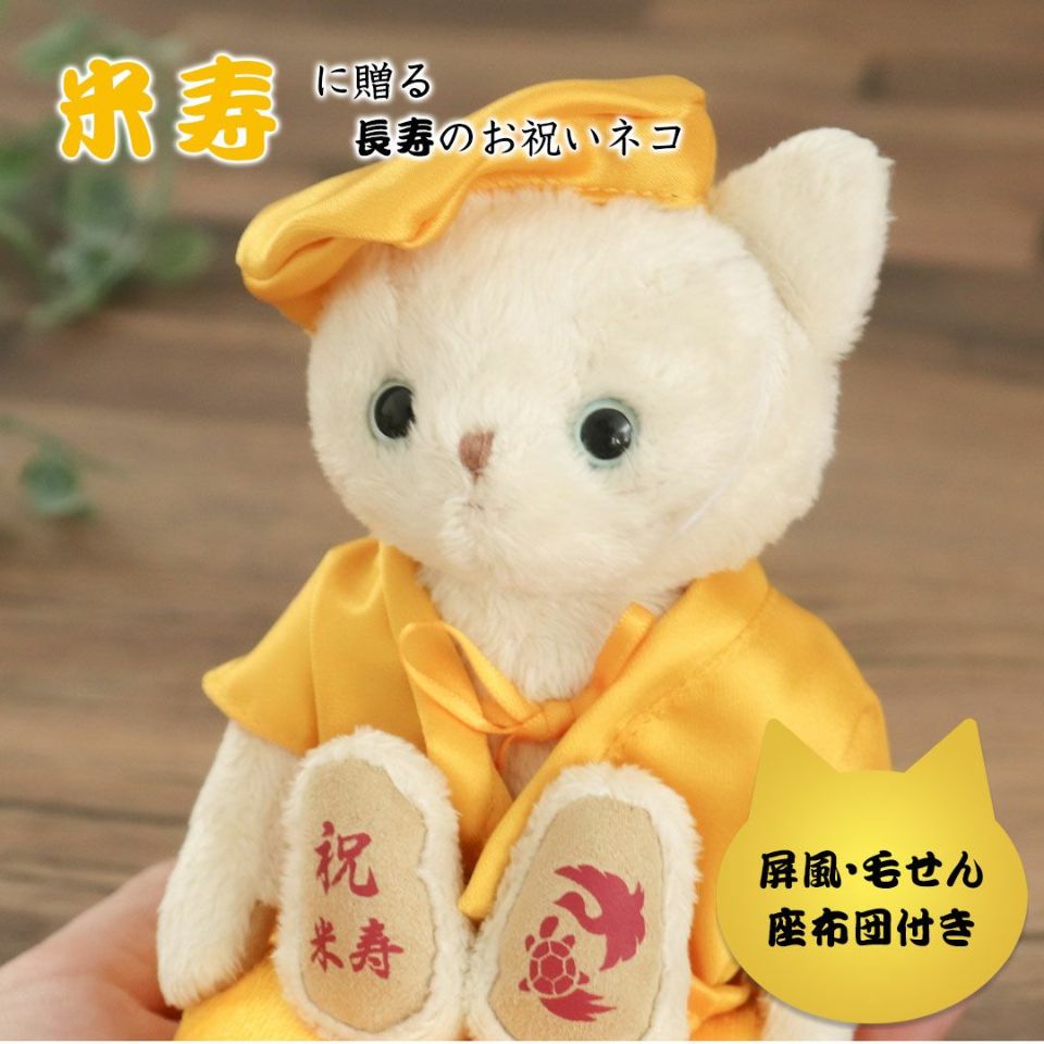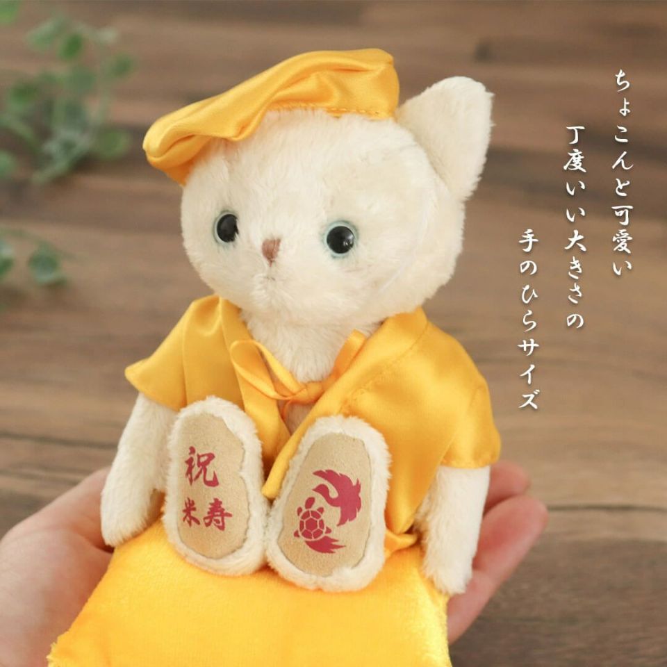 プレゼントとして贈った後は、米寿ネコと一緒に記念撮影すれば、家族の大切な想い出となることでしょう。 お祝いが終わった後も、インテリアとしてお楽しみいただけます。 場所をとらない飾りやすいコンパクトサイズなので、玄関やお部屋など家族やお友達との楽しいお祝いの思い出をいつも近くに飾っておくことができます。