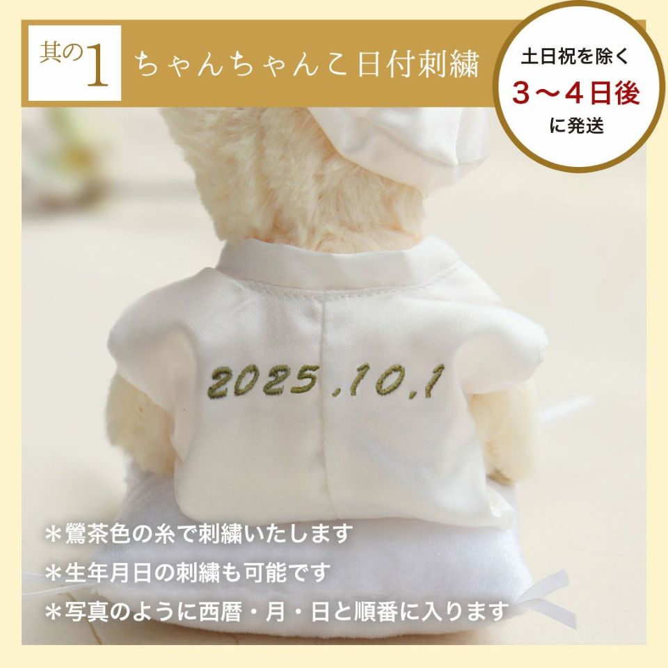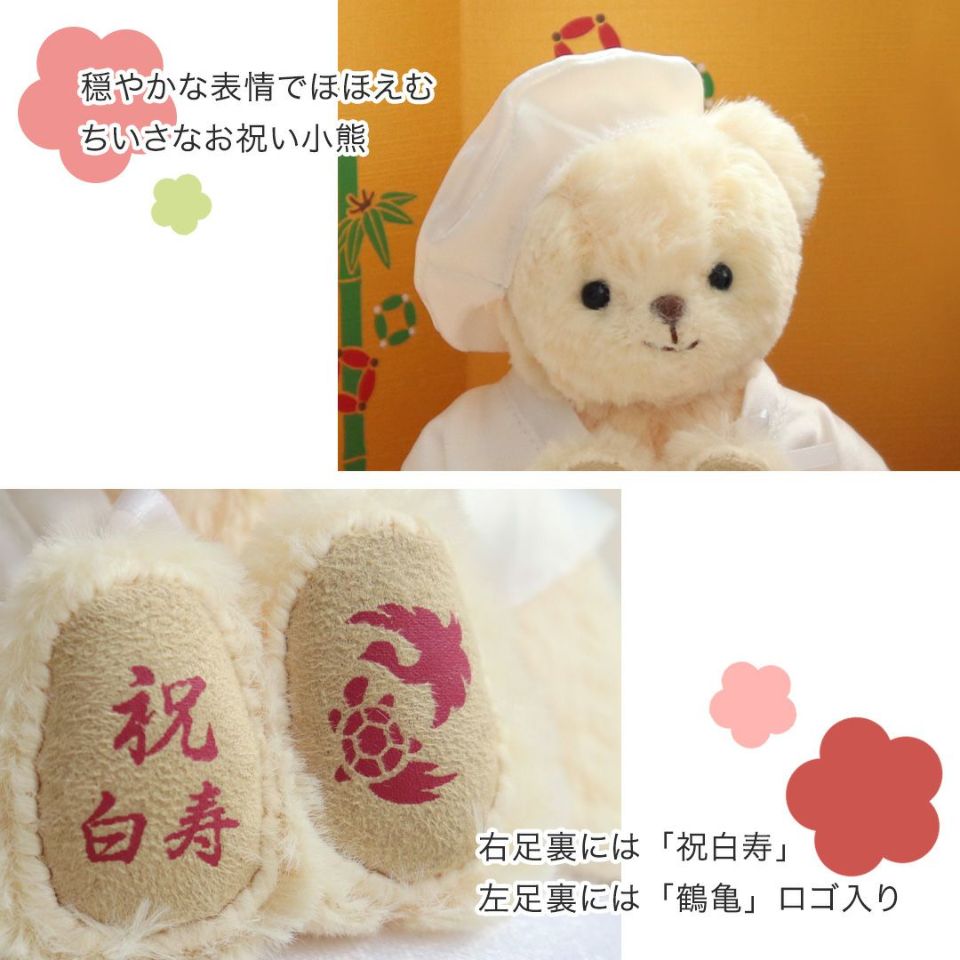 スタッフがご長寿ベアのちゃんちゃんこを脱がせて、大人気のコスチューム「おしゃれこぐま」を着せてみました。お祝いが終わった後もずっと楽しめるプティルウのご長寿ベアの魅力を是非ご覧ください。