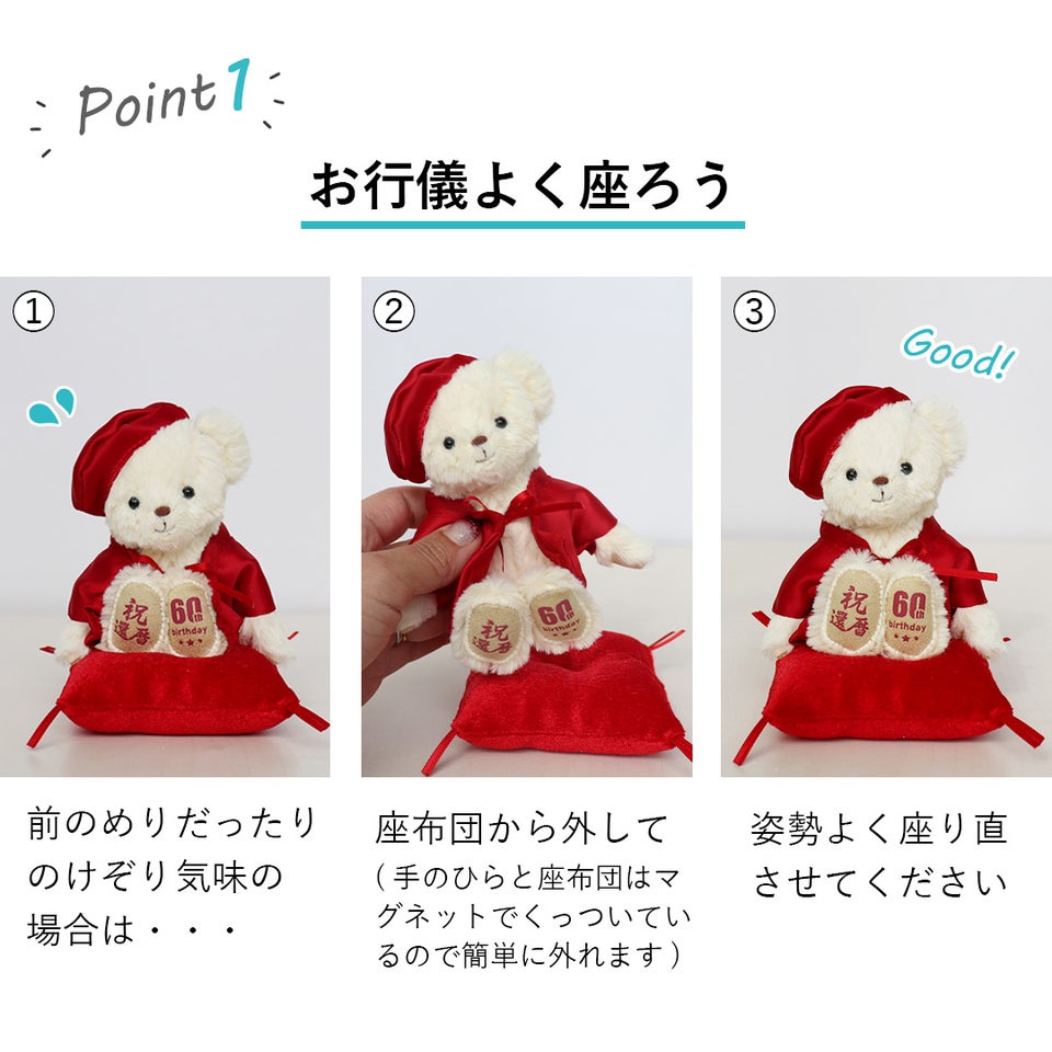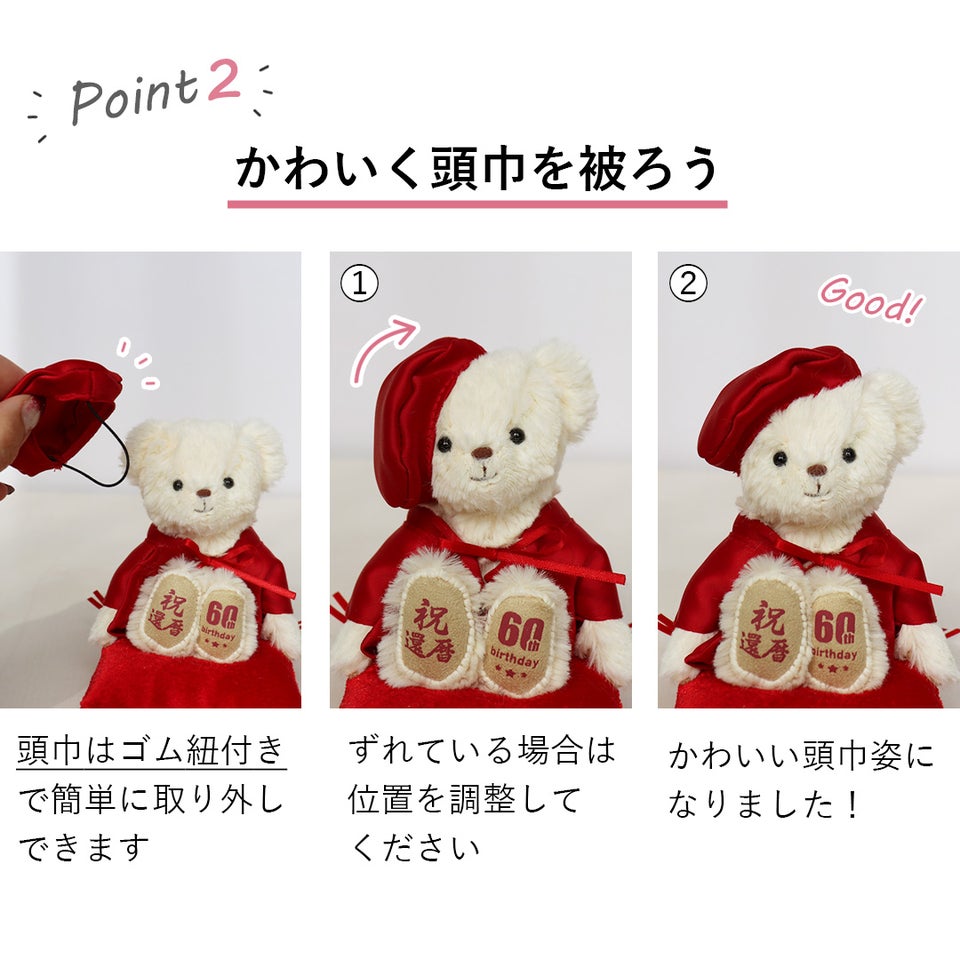 日本製プレミアムテディべアで還暦祝い 還暦祝いテディべア プレミアム【名前/日付/メッセージ刺繍】