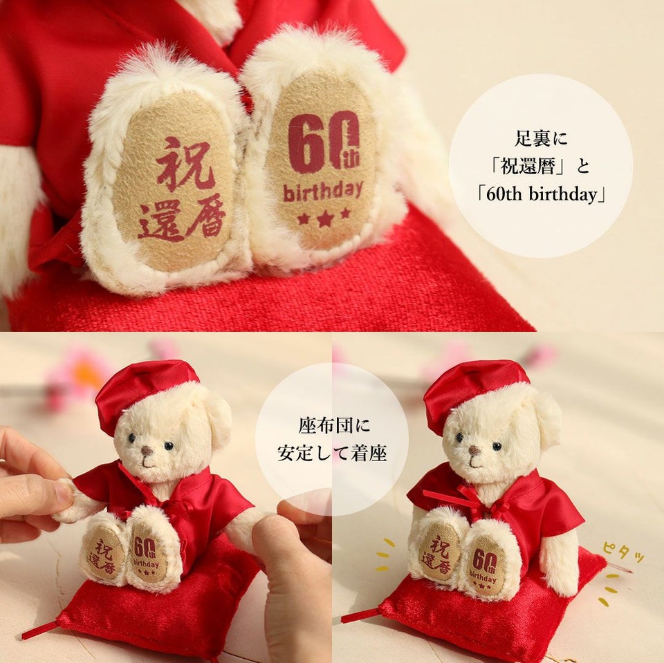 日本製プレミアムテディべアで還暦祝い 還暦祝いテディべア プレミアム【名前/日付/メッセージ刺繍】