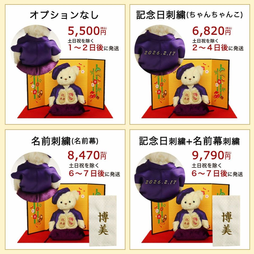 画面上と実物では多少色具合が異なって見える場合もございます。ご了承くださいませ。※生産時期によりベアの毛並み・毛色、ちゃんちゃんこの色などが多少異なります。