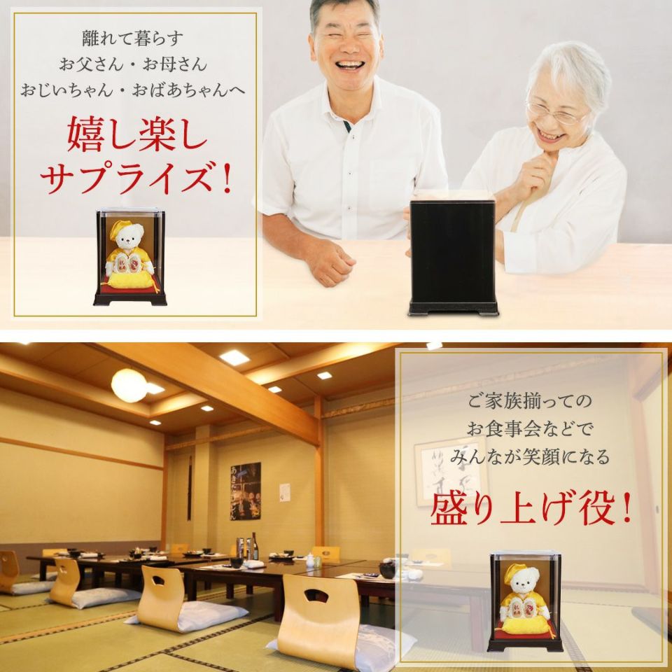 お孫さまが書いた似顔絵や家族からの手書きメッセージを、米寿ベアに添えて飾ることができます。