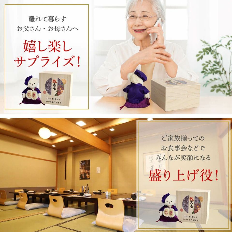テディベアの横に立てて飾れる小さな色紙。 お孫さまが書いた似顔絵や家族からの手書きメッセージを、米寿ベアに添えて飾ることができます。 別ページの商品を一緒にご購入ください。
