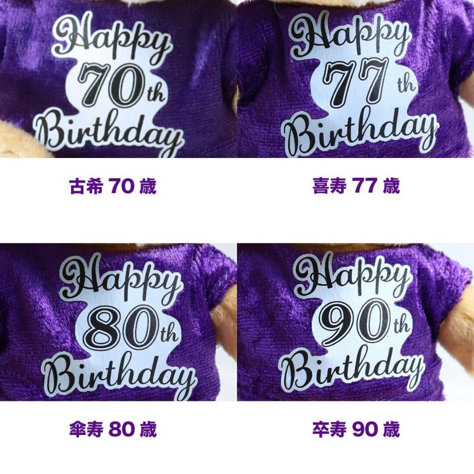 古希・喜寿・傘寿・卒寿 長寿ラッキーベア(4S)/生まれ年の干支プリント入り