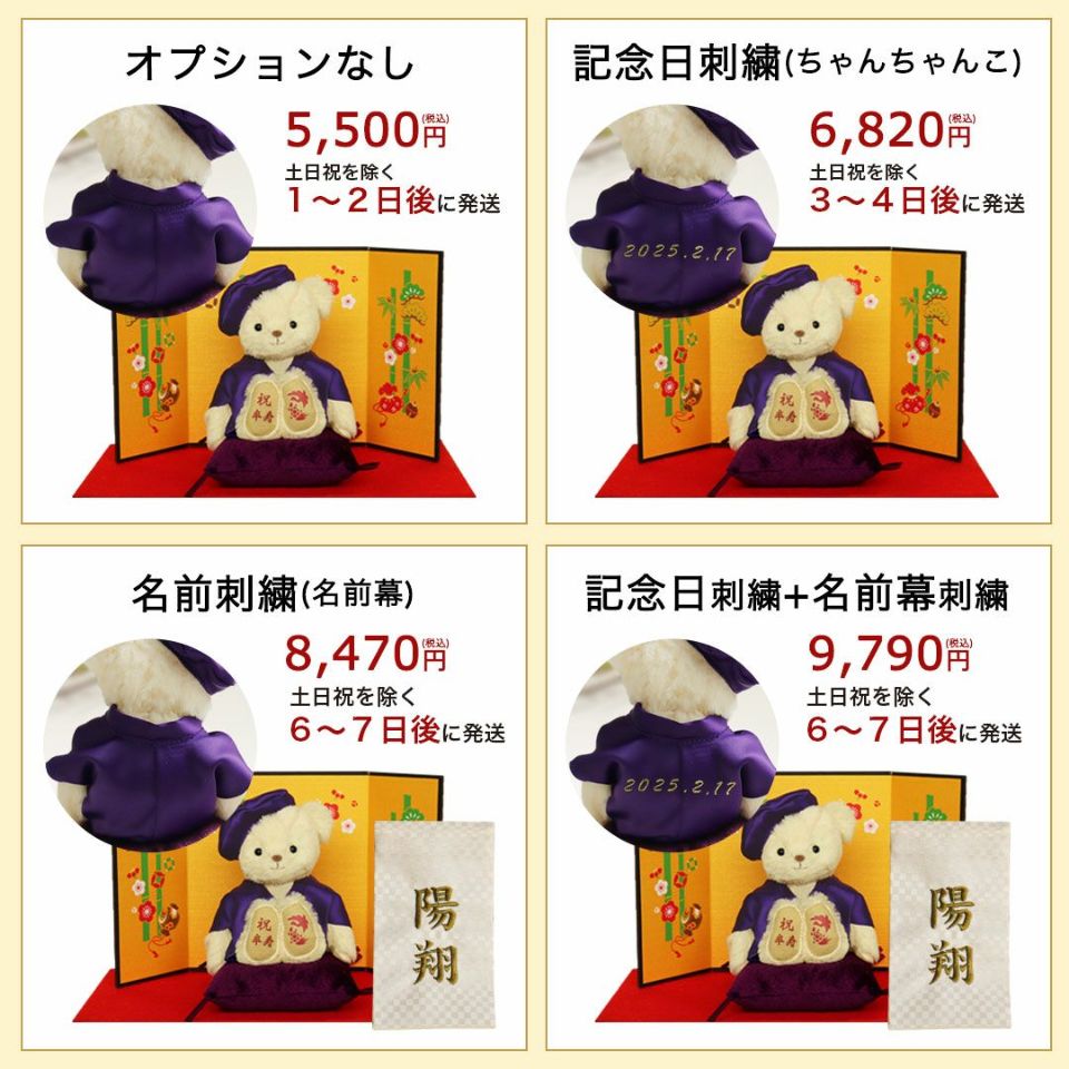画面上と実物では多少色具合が異なって見える場合もございます。ご了承くださいませ。※生産時期によりベアの毛並み・毛色、ちゃんちゃんこの色などが多少異なります。