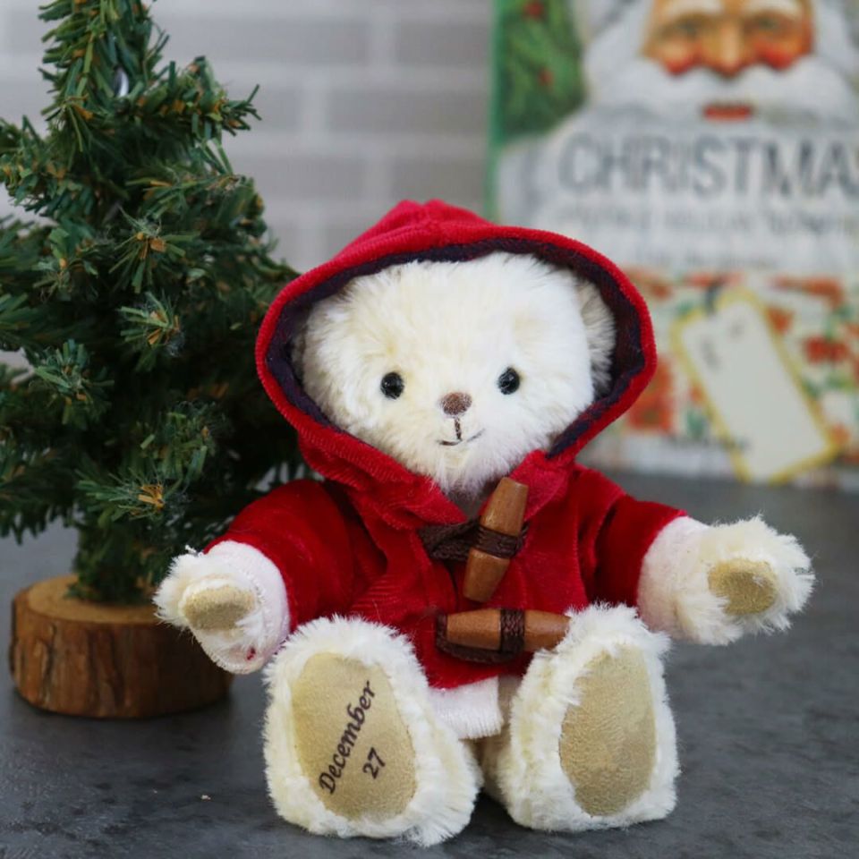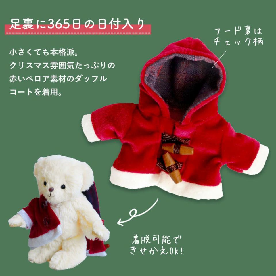セット内容 足裏日付入りベア(赤いダッフルコート着用)
