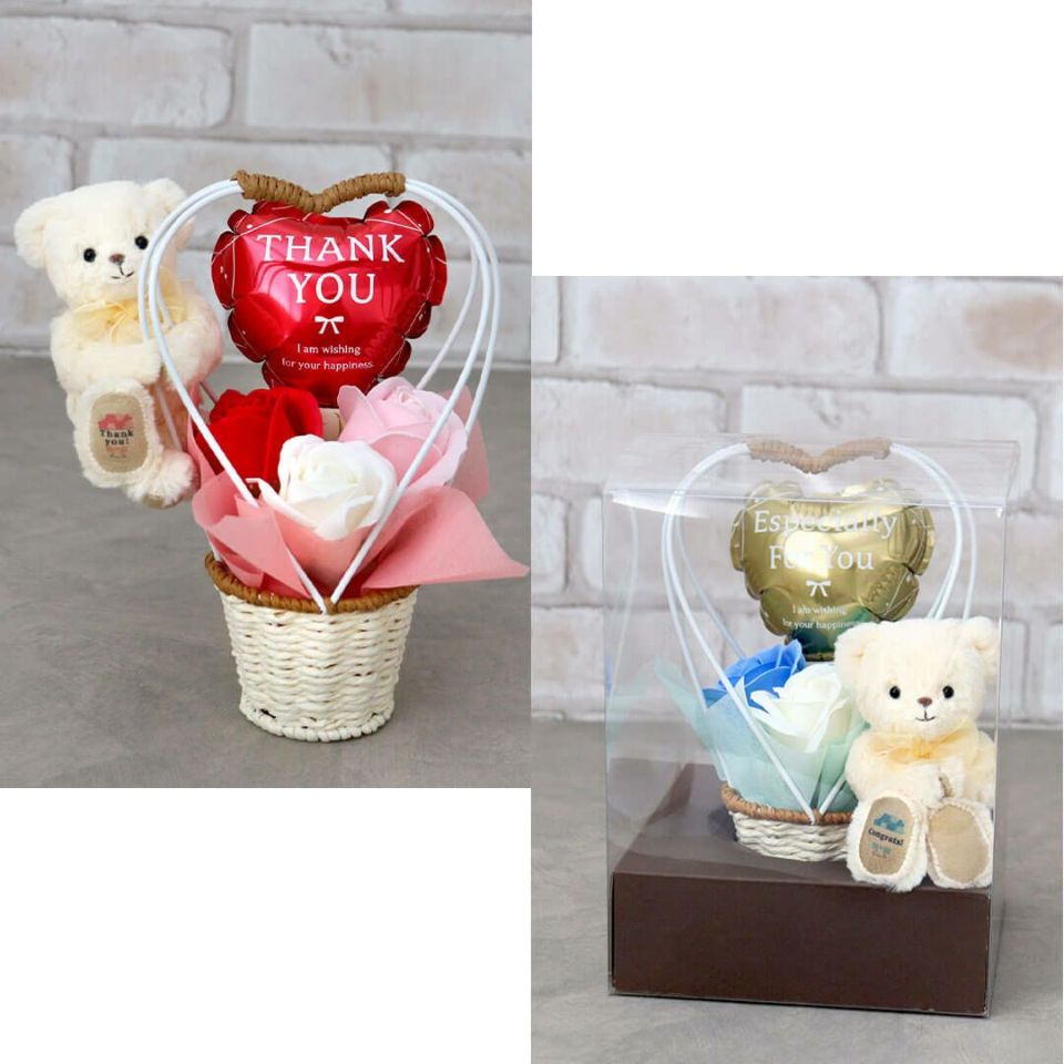 セット内容 FUUベア1体、フラワーバスケット、クリアBOX