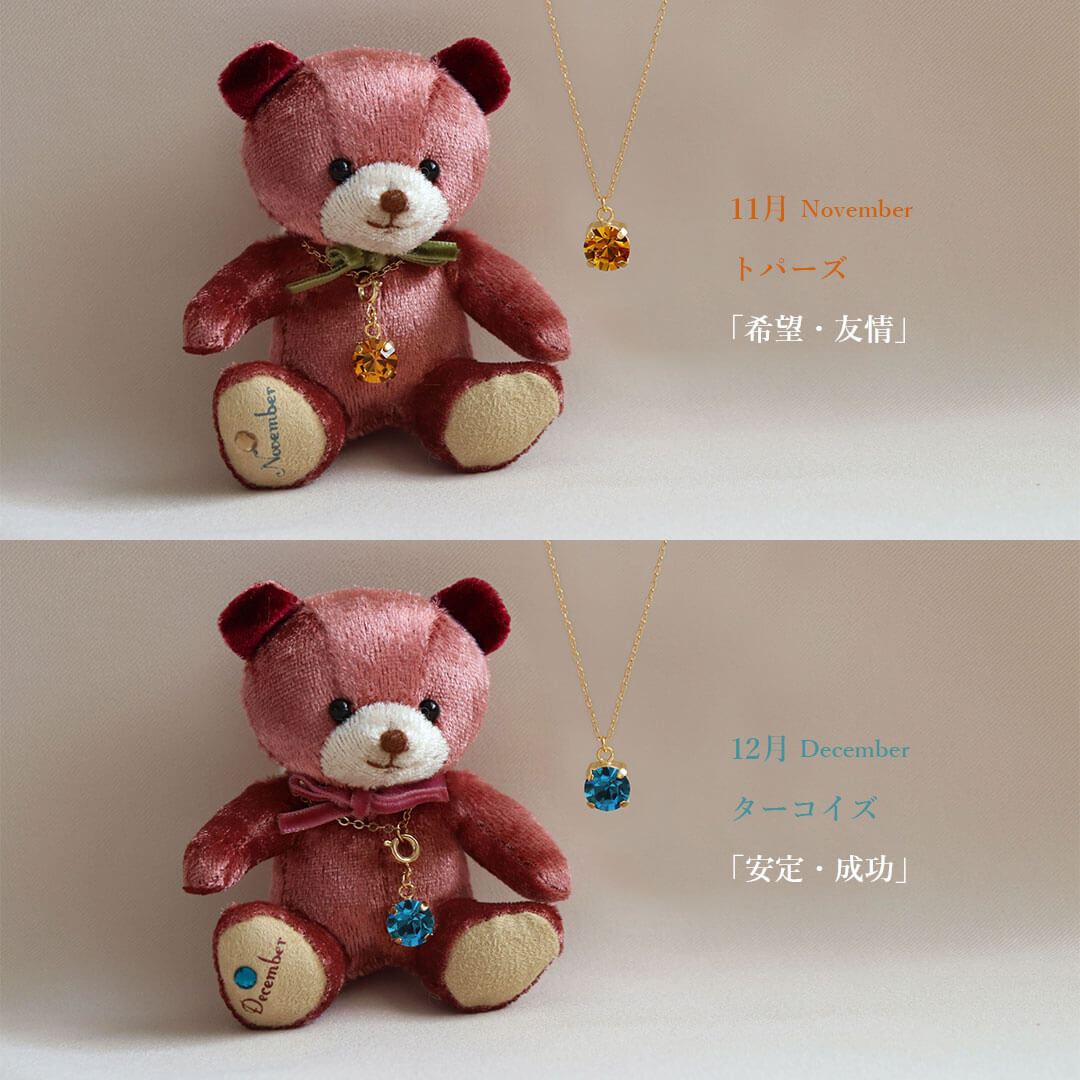 ベロア調の大人なミニベア ミニエンジェルベア&誕生石クリスタルネックレス/月名入り