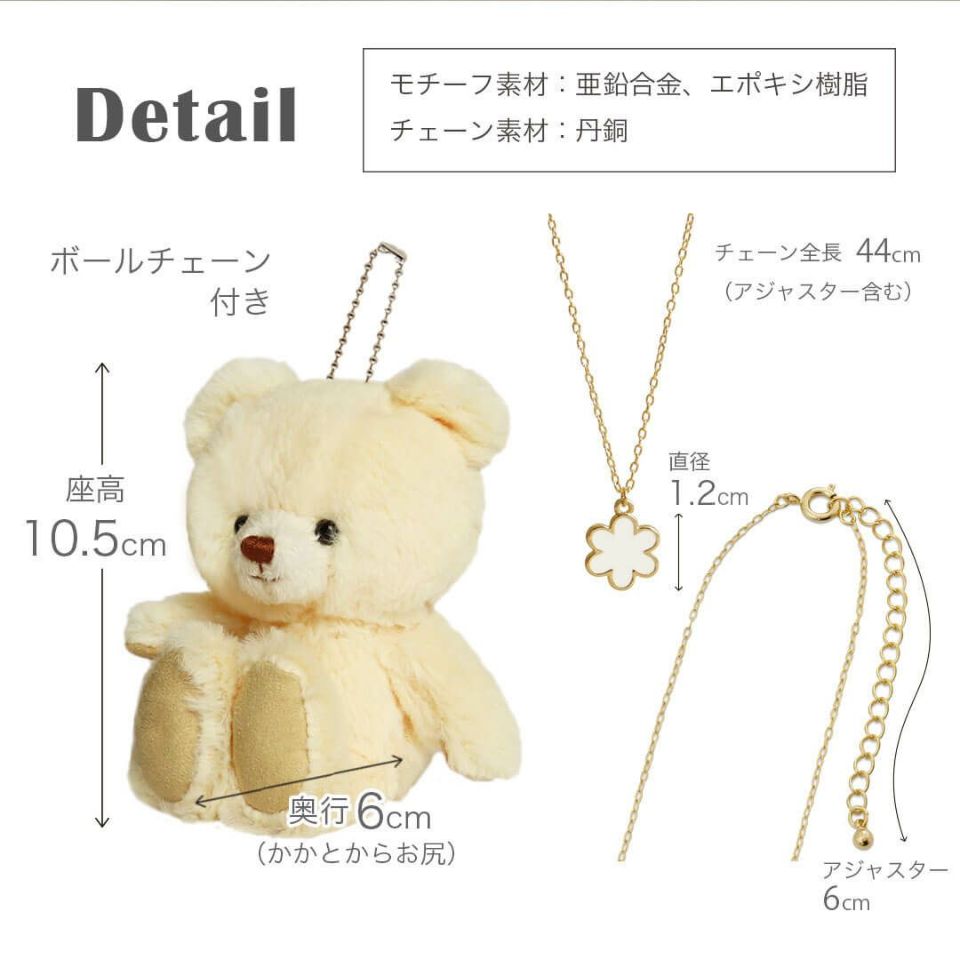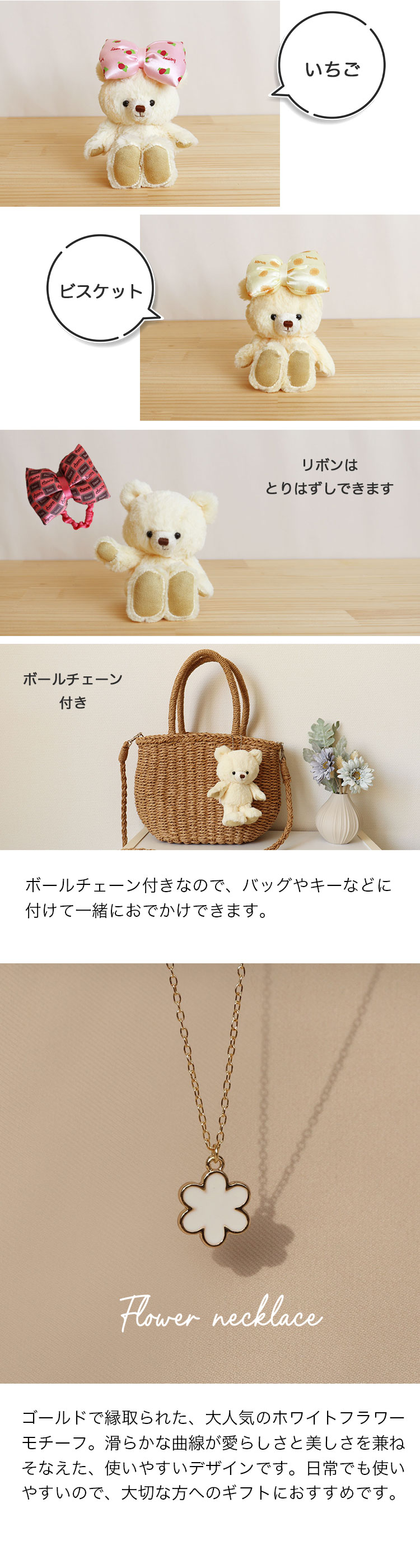 セット内容 ベア1体(リボン着用)、フラワーネックレス1本、ギフトボックス