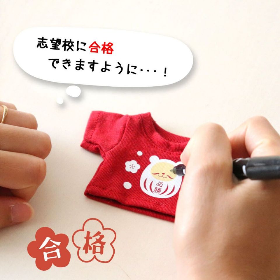 セット内容 だるま必勝Tシャツ着用合格祈願ベア1体、商品説明リーフレット