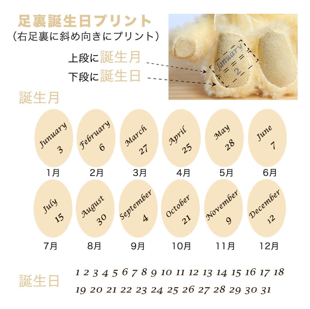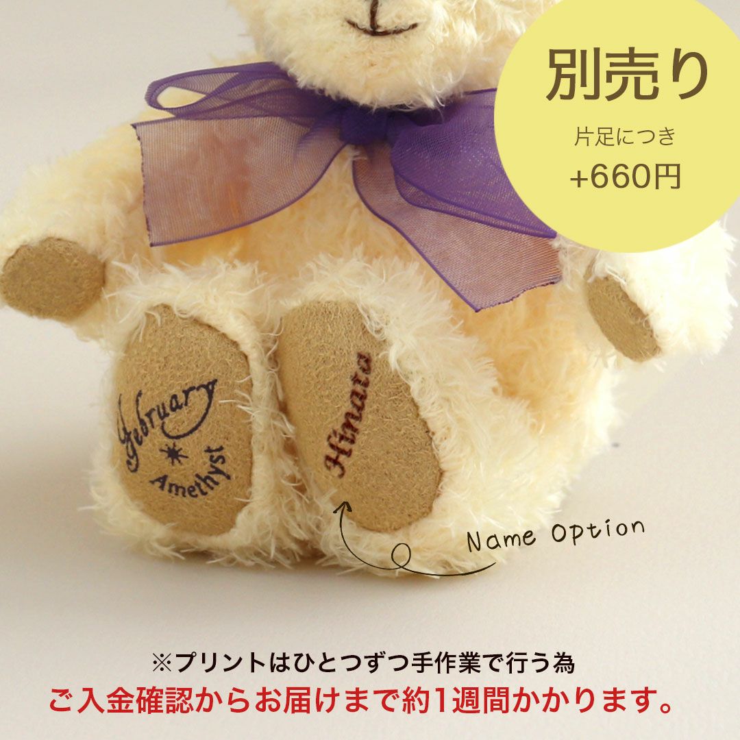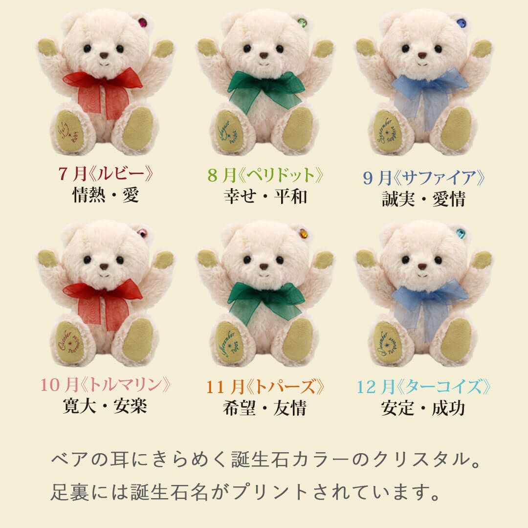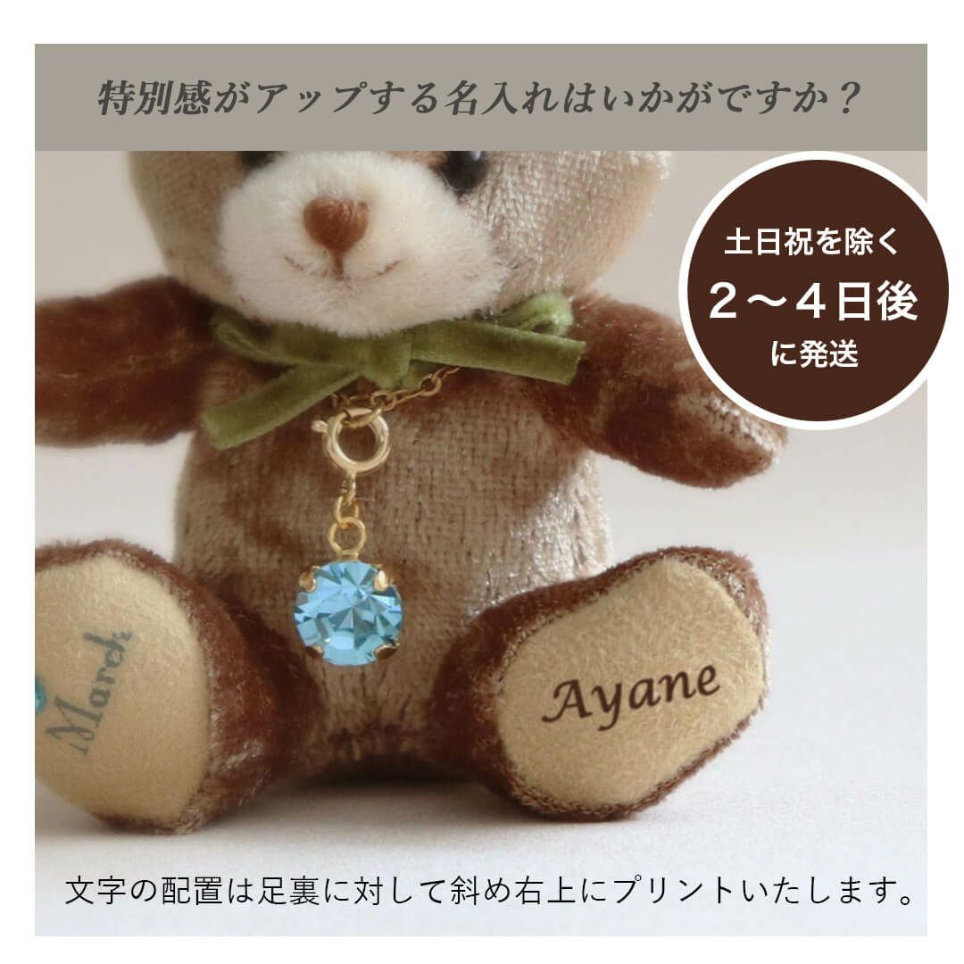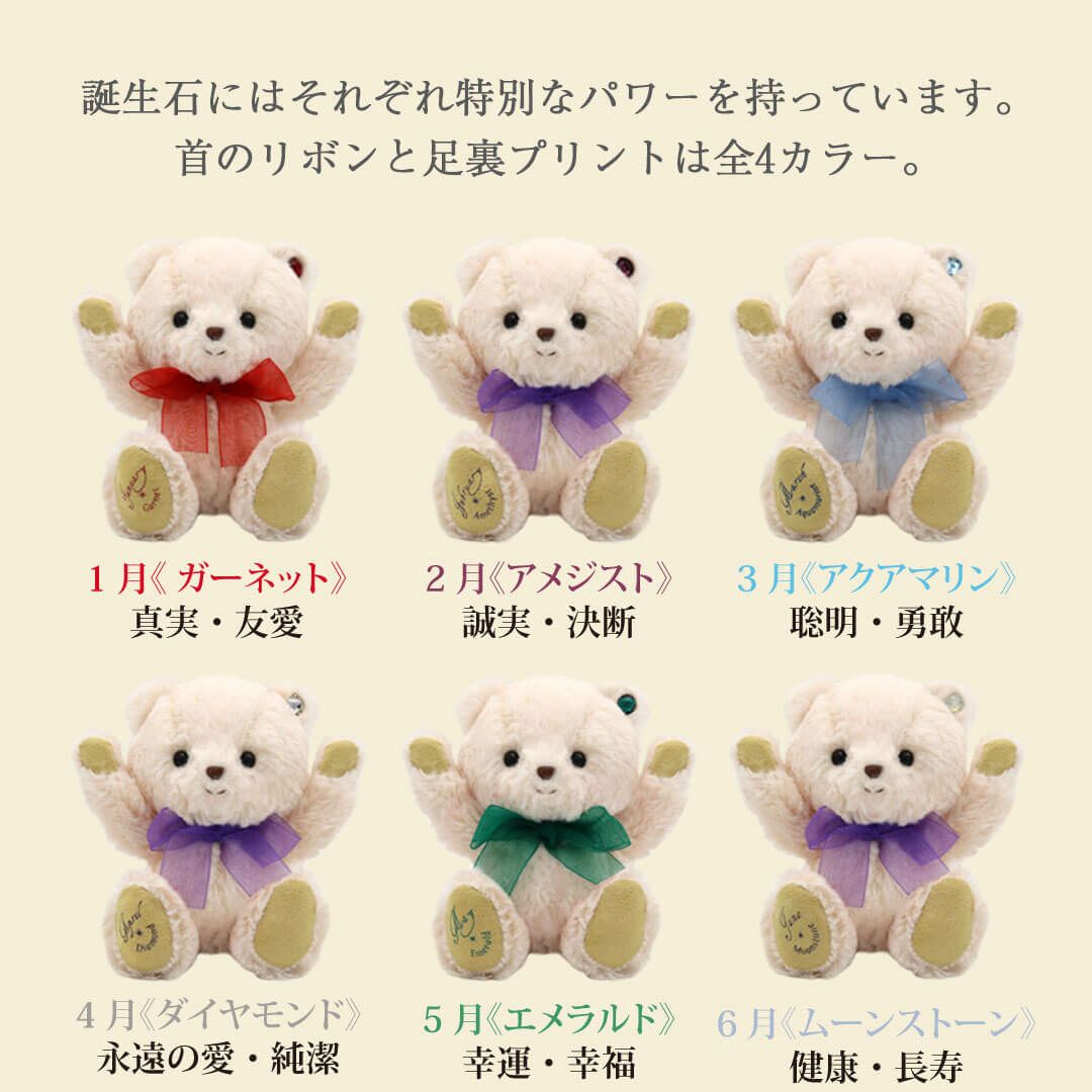 足裏に誕生日・誕生月や誕生石カラーのクリスタルをあしらったベア、