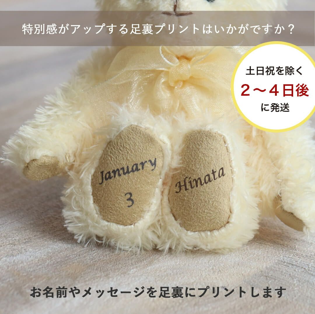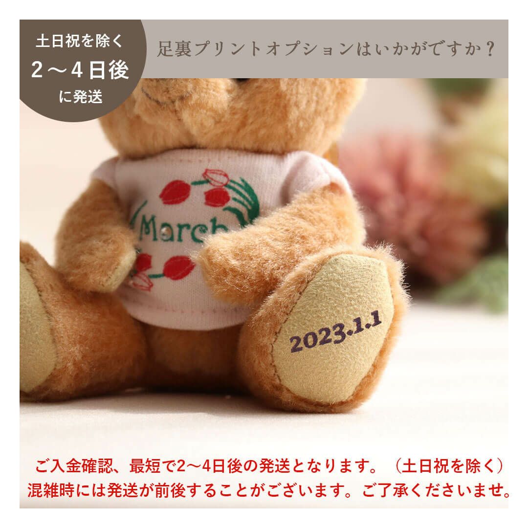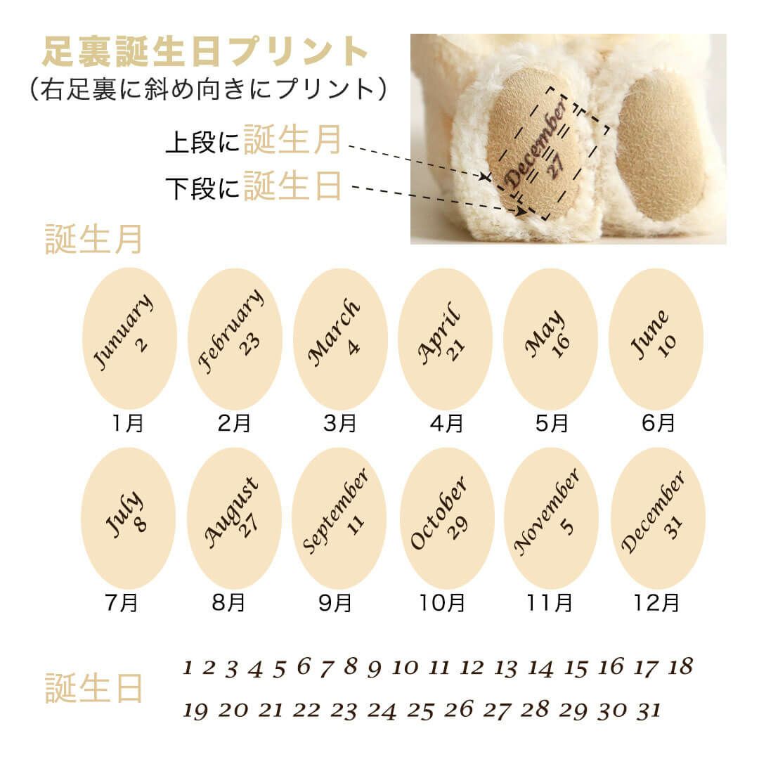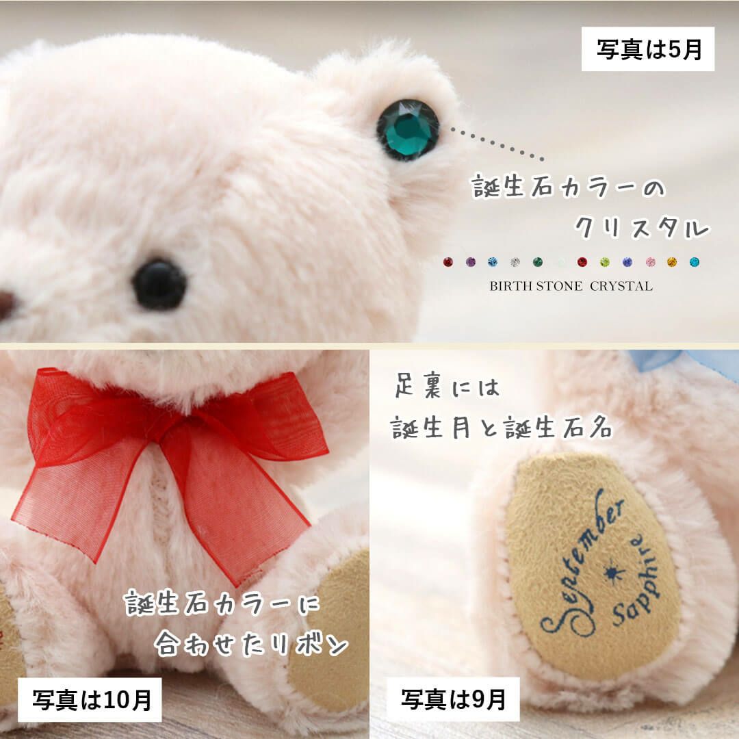 足裏に誕生日・誕生月や誕生石カラーのクリスタルをあしらったベア、