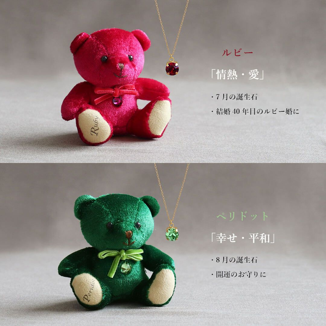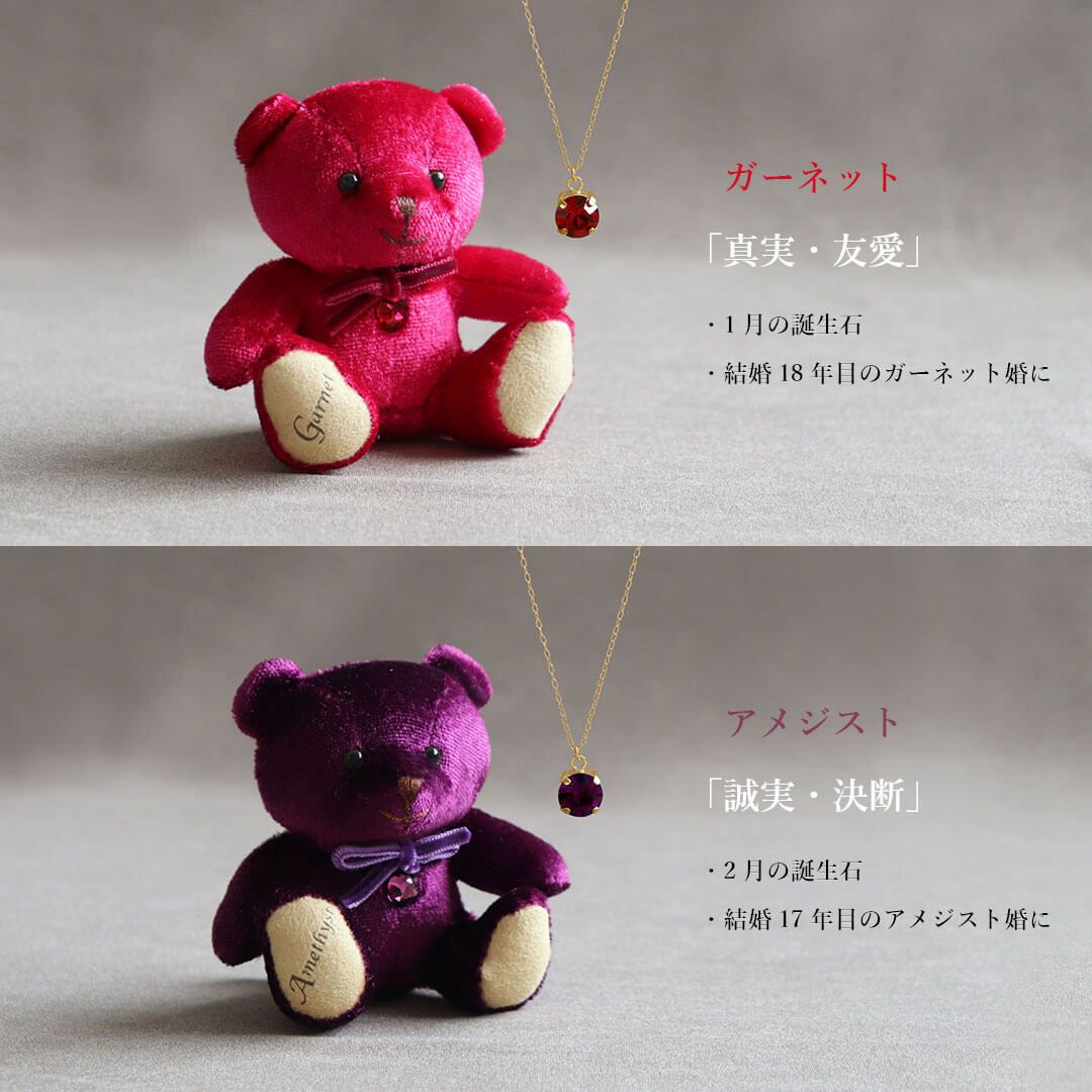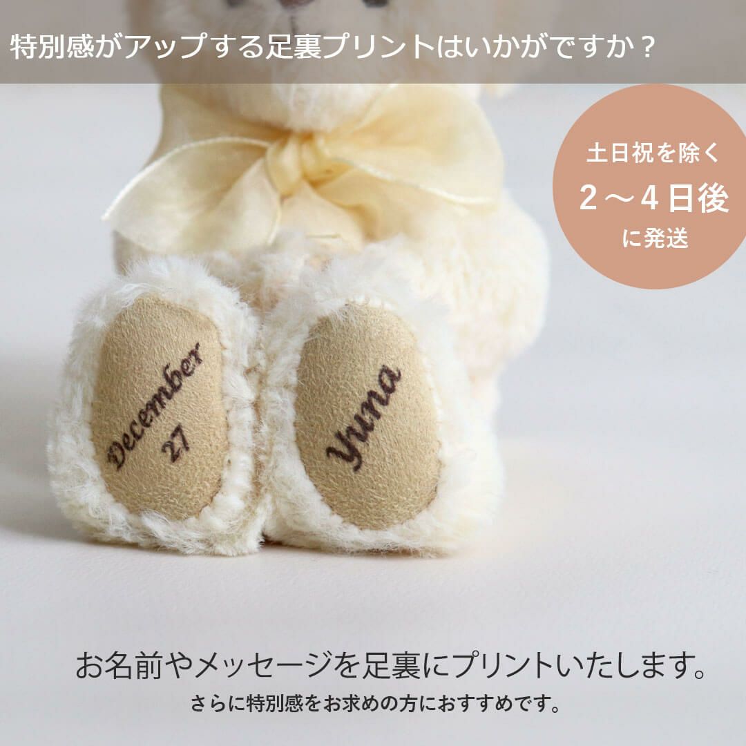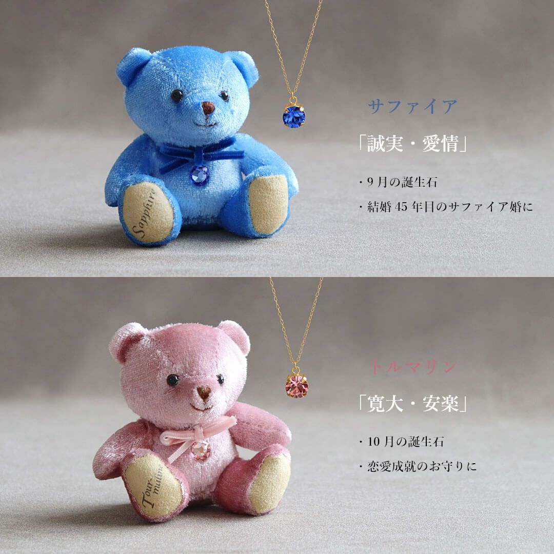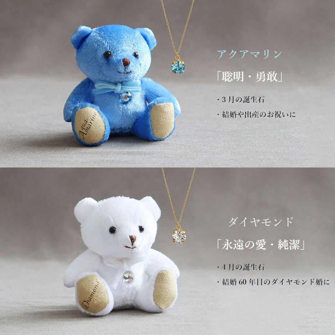 足裏に誕生日・誕生月や誕生石カラーのクリスタルをあしらったベア、