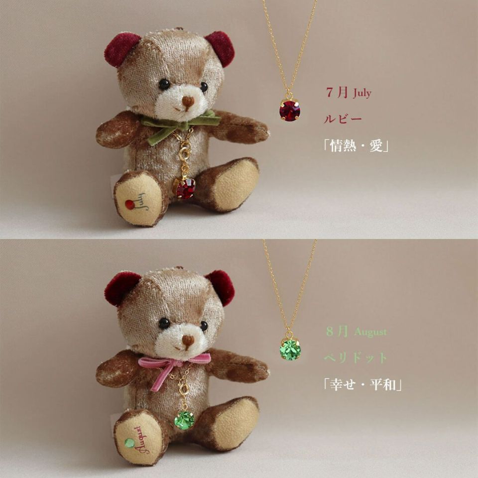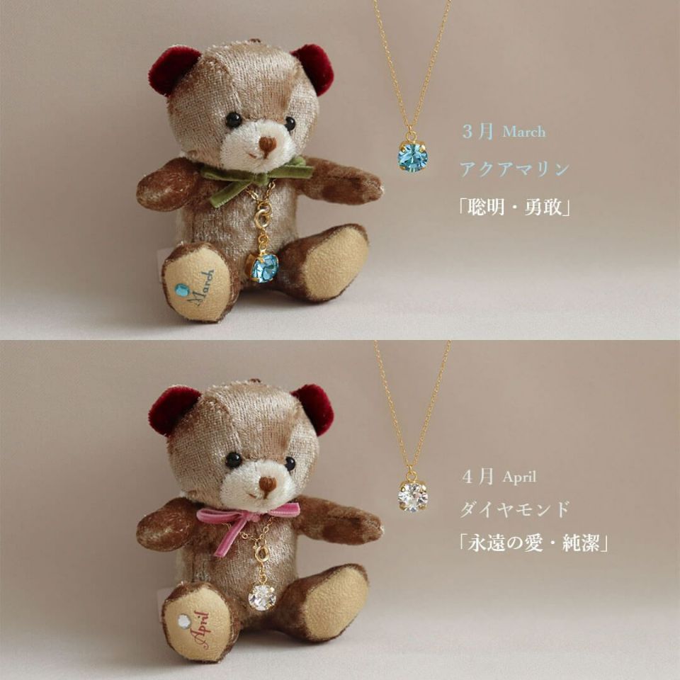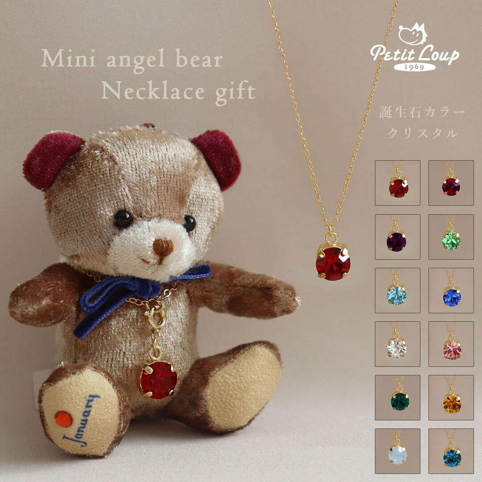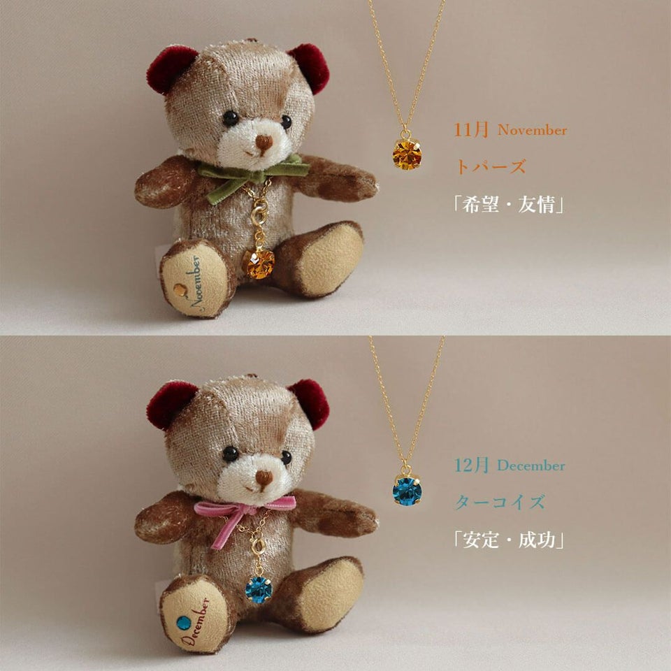 ベロア調の大人なミニベア ミニエンジェルベア&誕生石クリスタルネックレス/月名入り