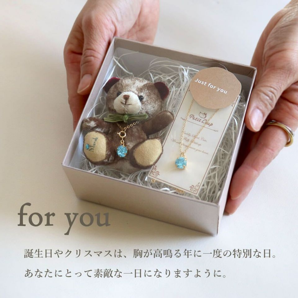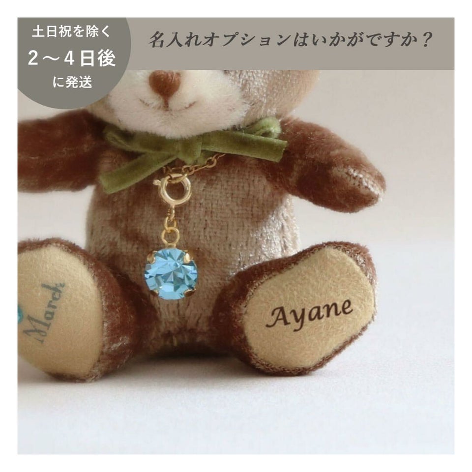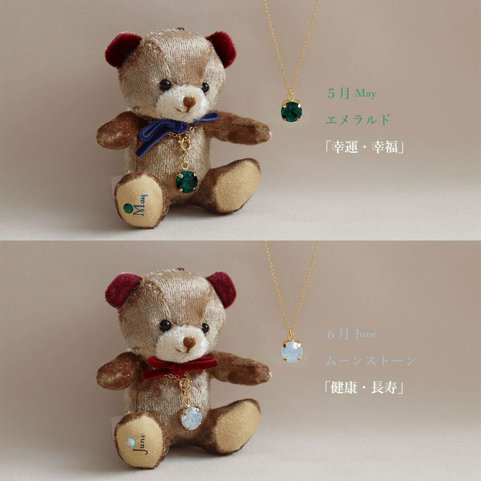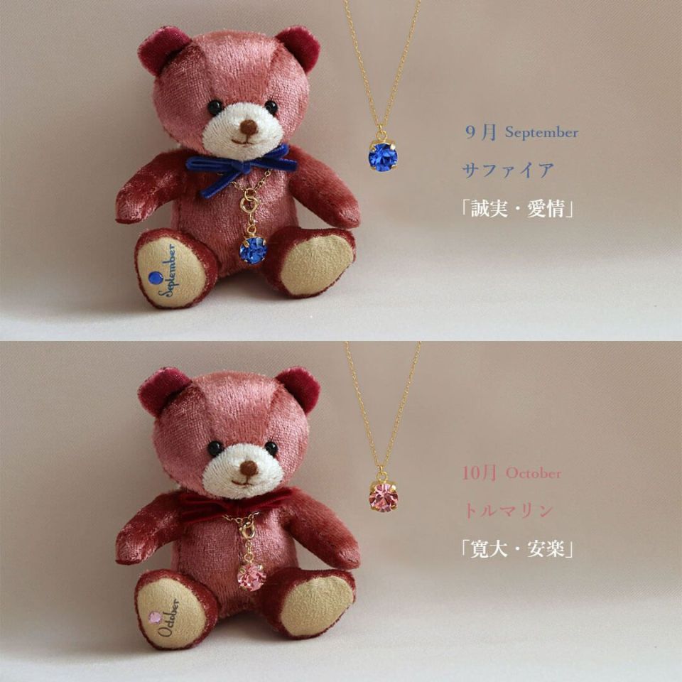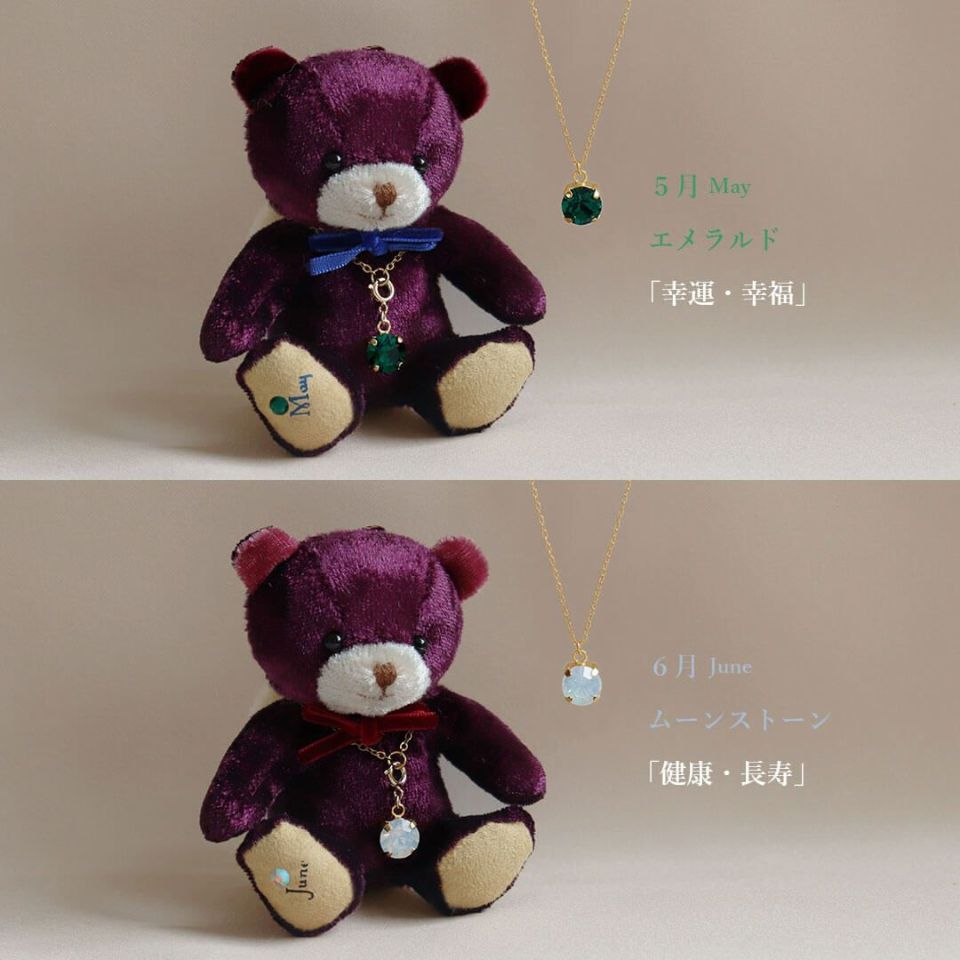 ベロア調の大人なミニベア ミニエンジェルベア&誕生石クリスタルネックレス/月名入り