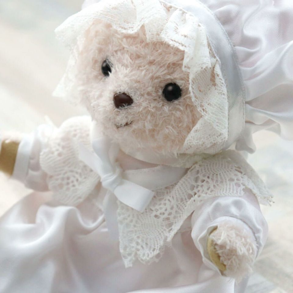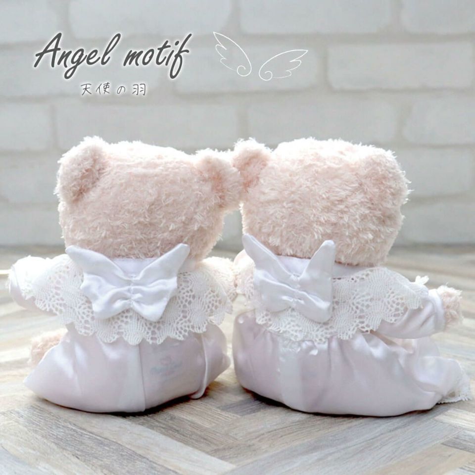 セット内容 エンジェルタイニーベア1体(ドレスまたはロンパース着せ込み、足裏プリント入り)、商品リーフレット