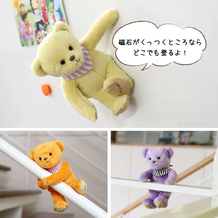 素材 ポリエステル、わた、内袋入りガラスペレット(おもり)、プラスチック、マグネット、スチール(ボールチェーン)