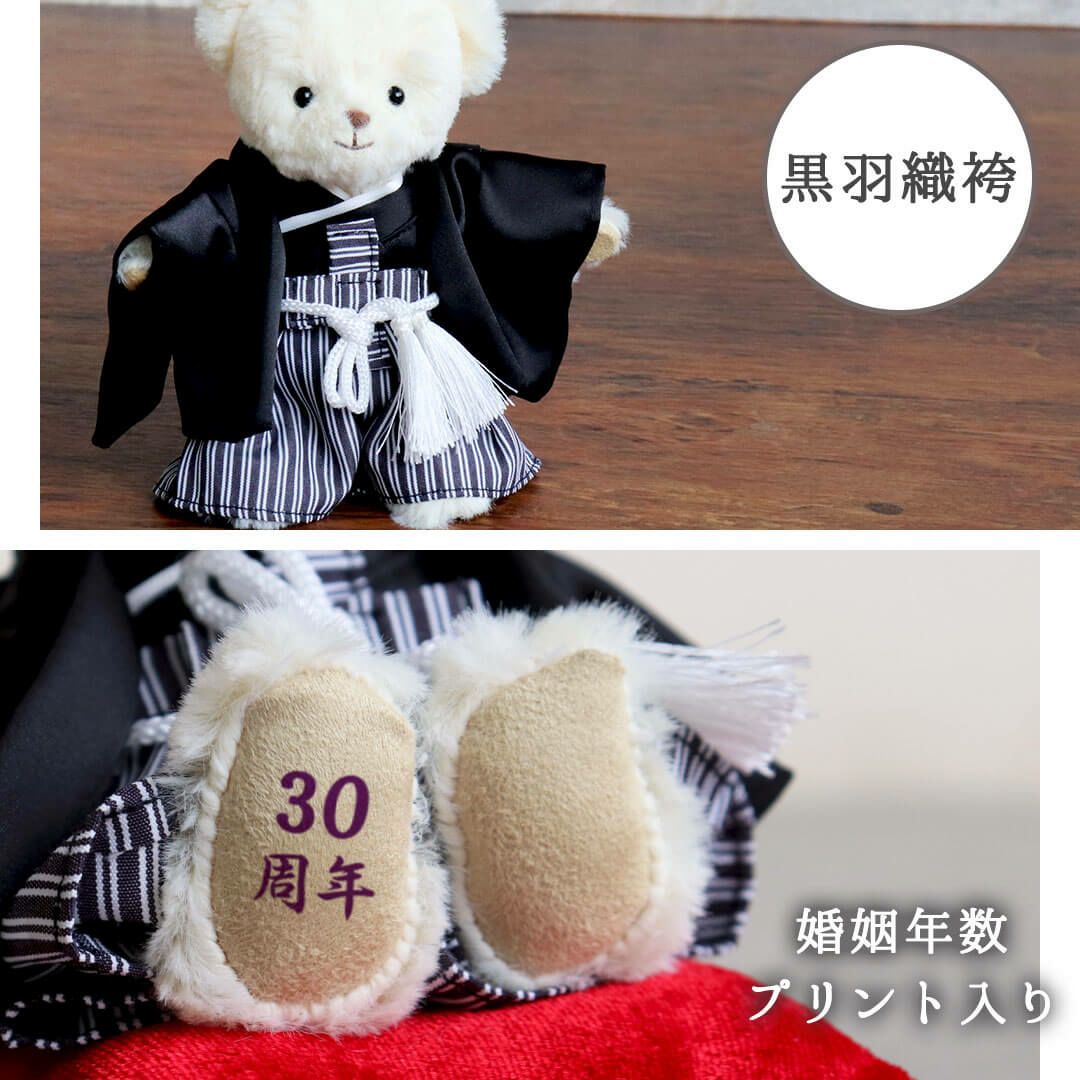 1周年から99周年まで、どの節目にも対応できる記念ベア。年数やお名前を入れて、おふたりだけの特別な1体に仕上げます。結婚記念日のプレゼントやご両親への贈り物にもおすすめです。