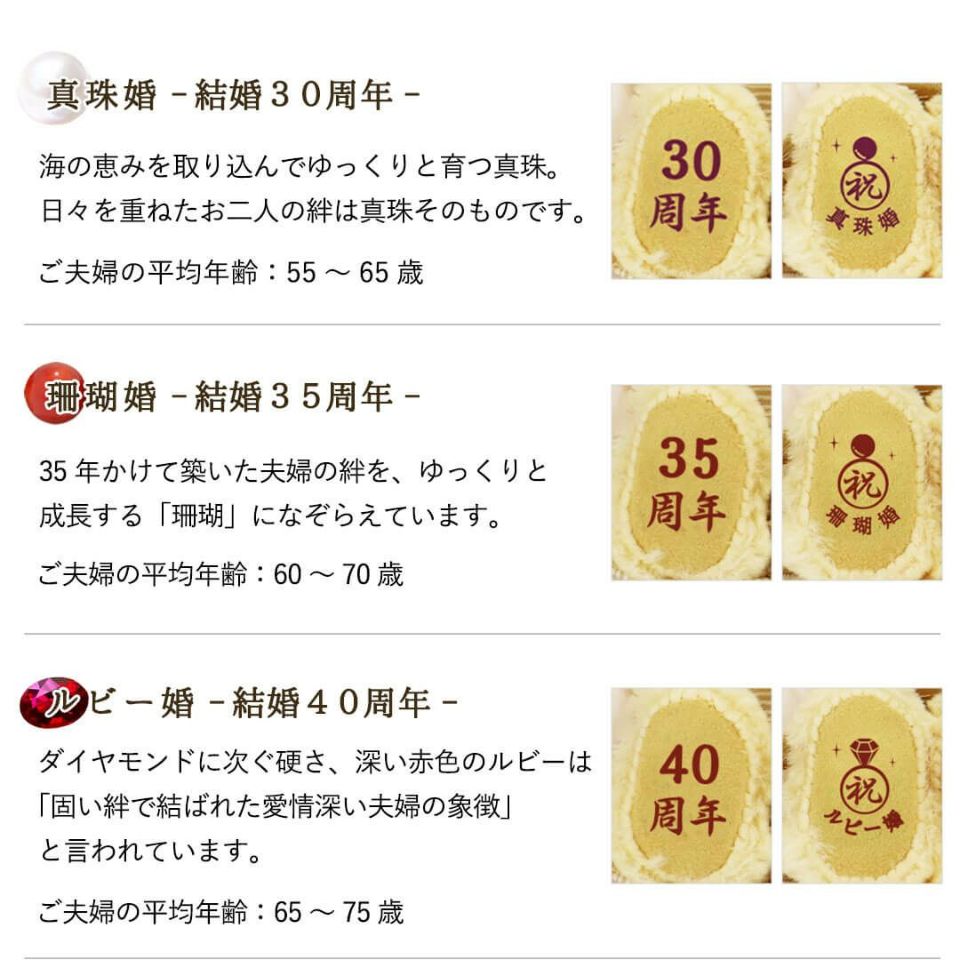 ・足裏に「○○周年」の文字と「祝○○婚」のイラストがプリントされています。