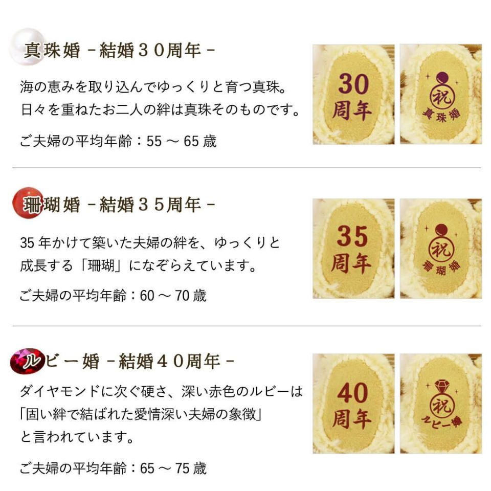 ・足裏に「○○周年」の文字と「祝○○婚」のイラストがプリントされています。