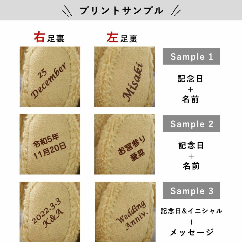 小さな足裏にプリント致します。最大文字数以上ご入力されますと文字が小さくなり綺麗にプリントできません。最大文字数にご注意くださいませ。