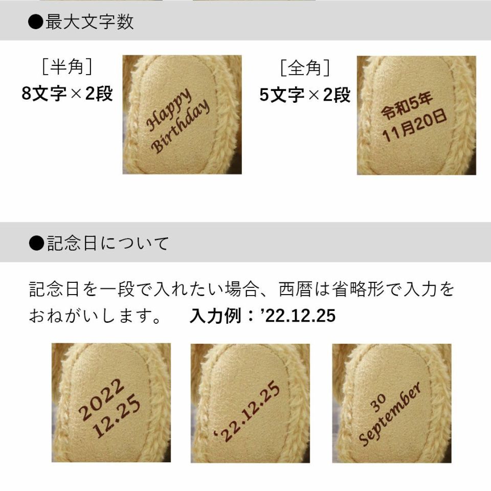 【最大文字数】 ●最大文字数は、ひらがな/カタカナ/漢字は 5文字×2段 まで、アルファベットの文字数は 8文字×2段 までとなります。 ●改行は当店におまかせください。 ●最大文字数以上ご入力されますとプリント文字が小さくなり綺麗にプリントできません。ご注意くださいませ。