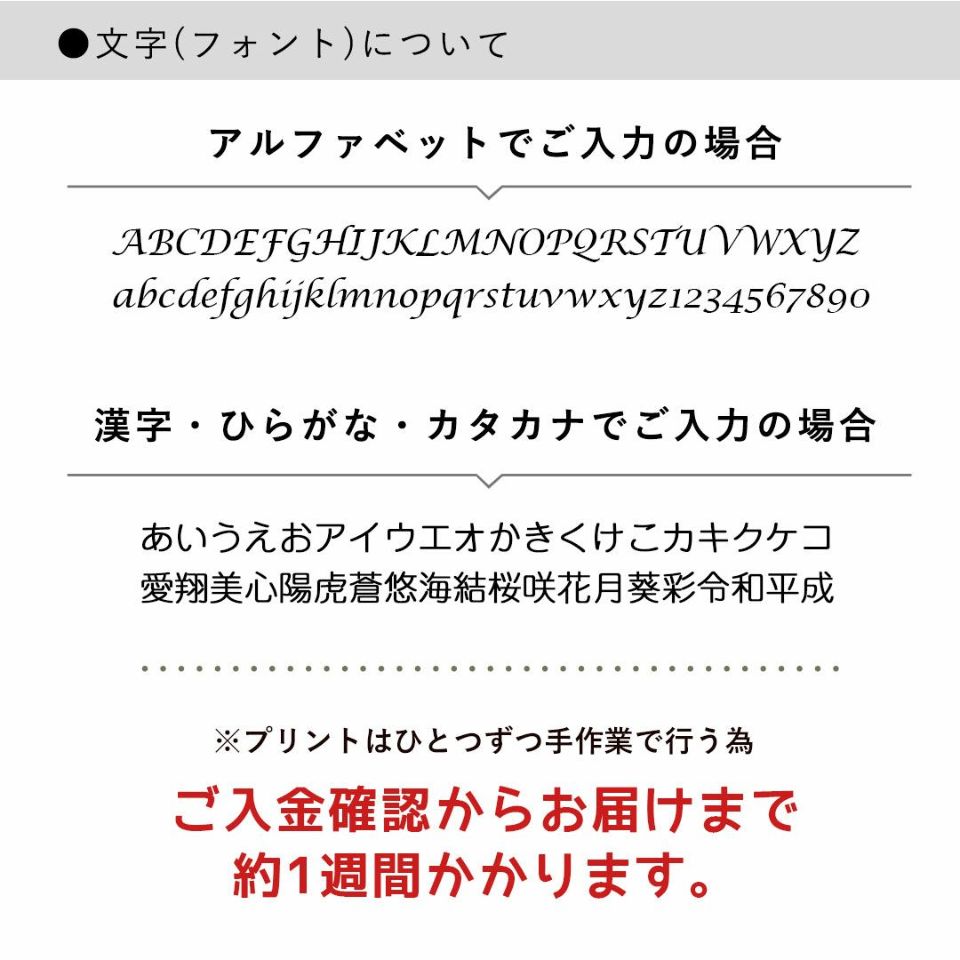 【フォントについて】 ●プリントできる文字はアルファベット/ひらがな/カタカナ/漢字の4種類となります。