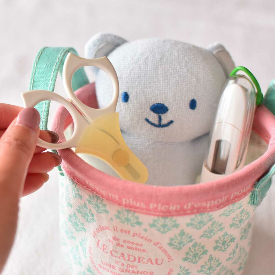 細々としたものを整理するのに大活躍の布製の小物入れ。内側は撥水加工されています。