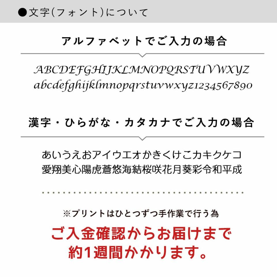 【フォントについて】 ●プリントできる文字はアルファベット/ひらがな/カタカナ/漢字の4種類となります。