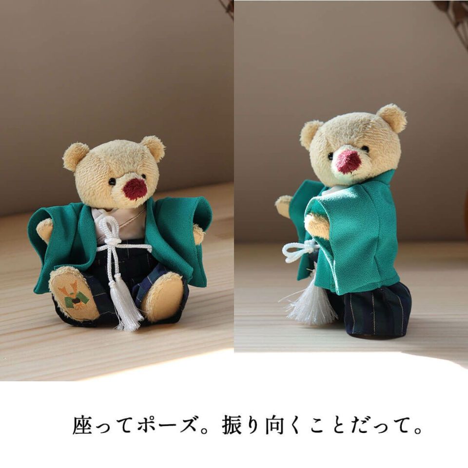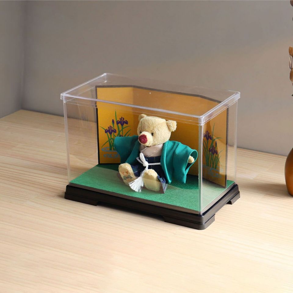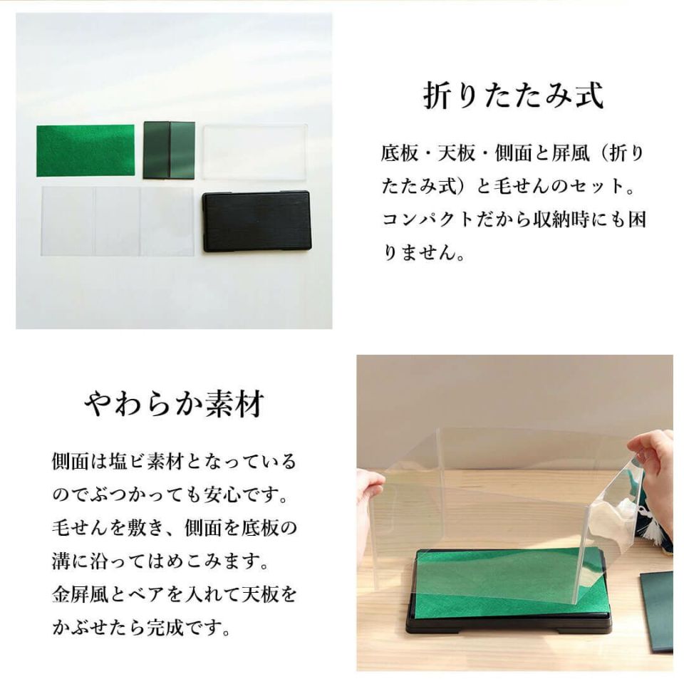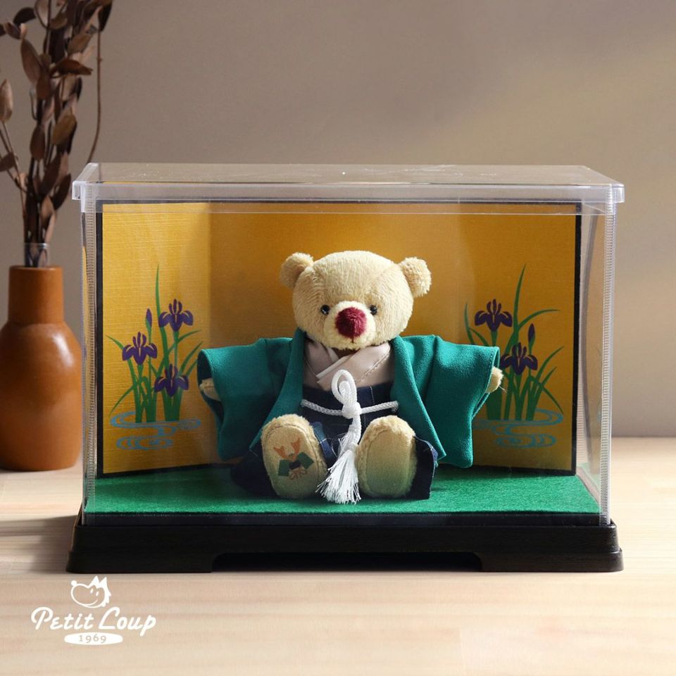 セット内容 クマの五月人形(羽織袴着用)・折りたたみケースセット(底板/天板/側面)・三つ折り金屏風・毛せん・説明リーフレット