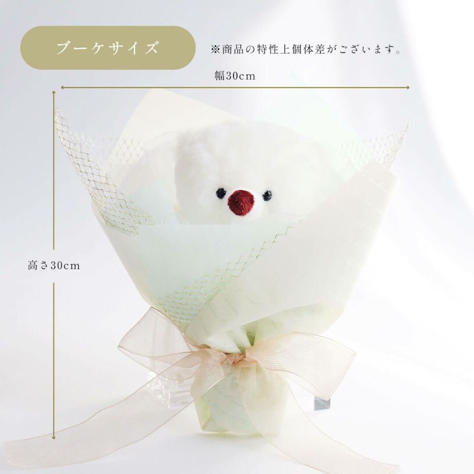 セット内容 ベア(ブーケラッピング)、専用ラグ、透明手提げ袋、説明リーフレット