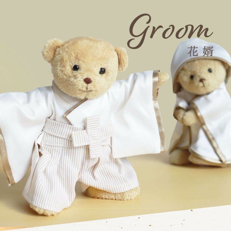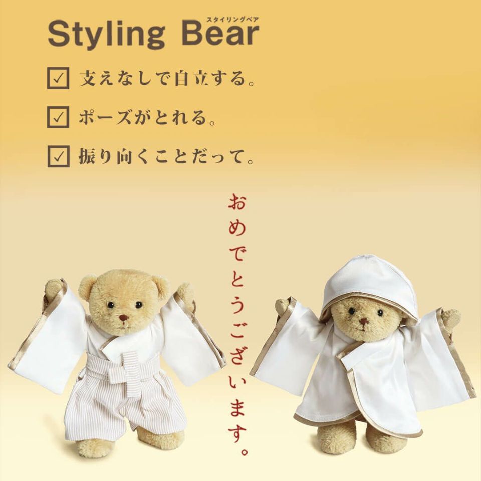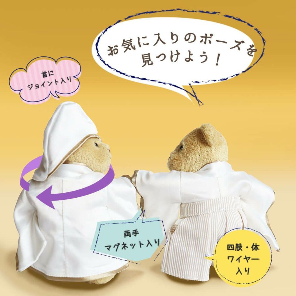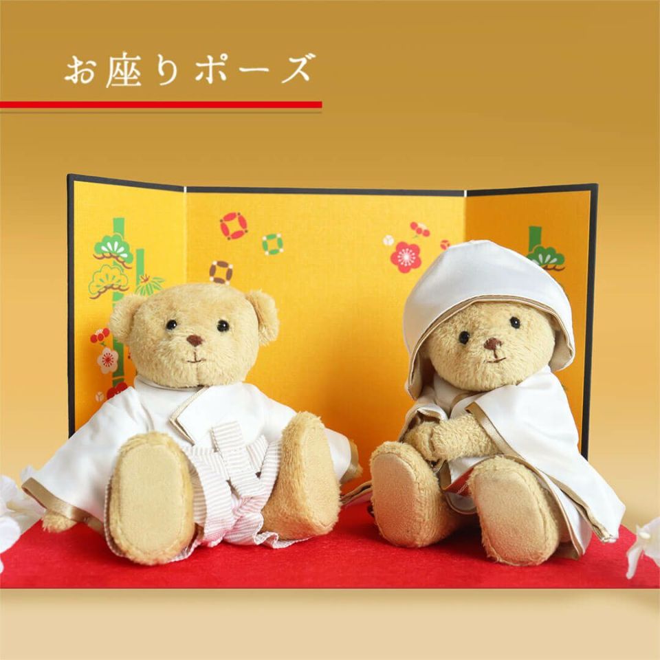 セット内容 スタイリングベア2体(TB:袴、TB:白無垢 着せ込み)、三つ折り屏風、台紙(毛せん)