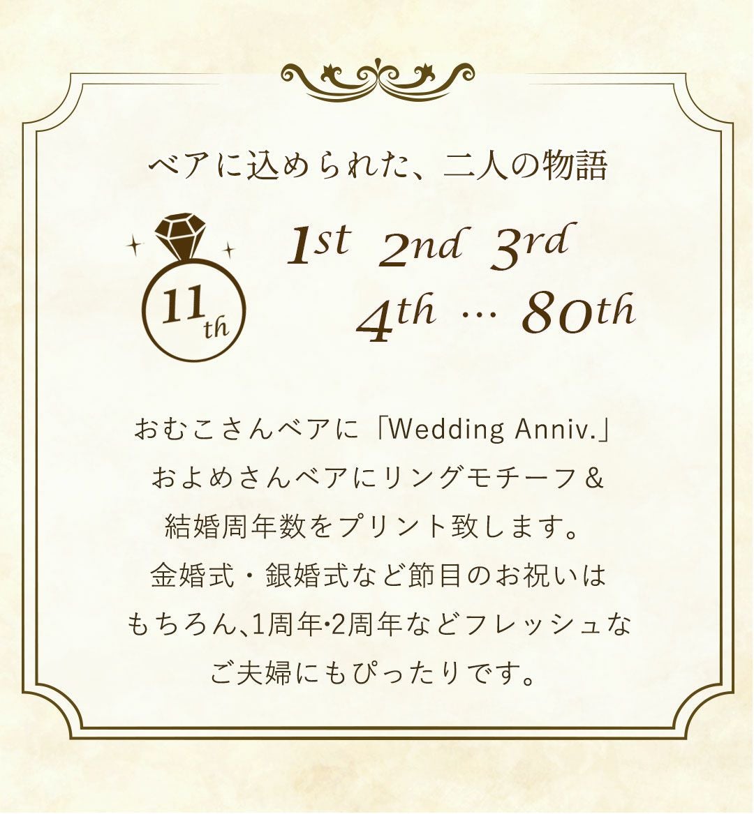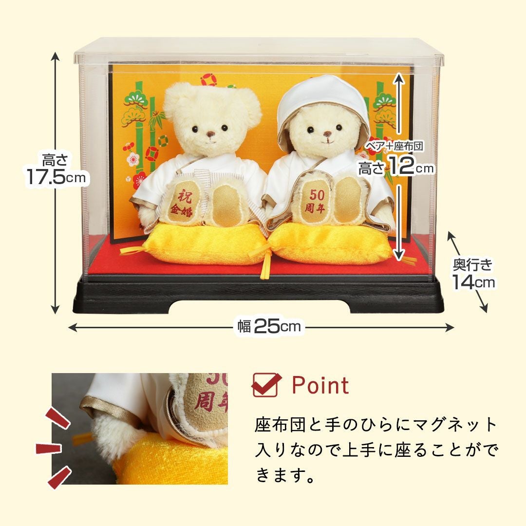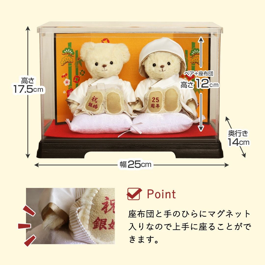 他の画像を見る 詳細を見る お気に入りに登録する 送料無料 結婚30周年・35周年・40周年・45周年・55周年・60周年のお祝い カラー和装結婚記念ベアケース(4S) 当店特別価格 ¥ 12,802 税込