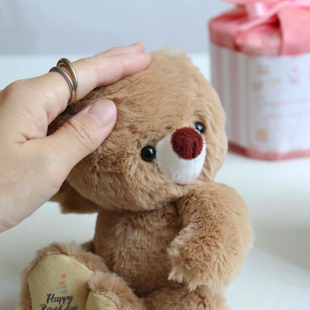 身長約20〜24cmのテディベアは、小さすぎず大きすぎない絶妙なサイズ感。お部屋に飾るだけでなく、手に取って抱きしめたり、一緒に写真を撮ったりとさまざまな楽しみ方ができます。