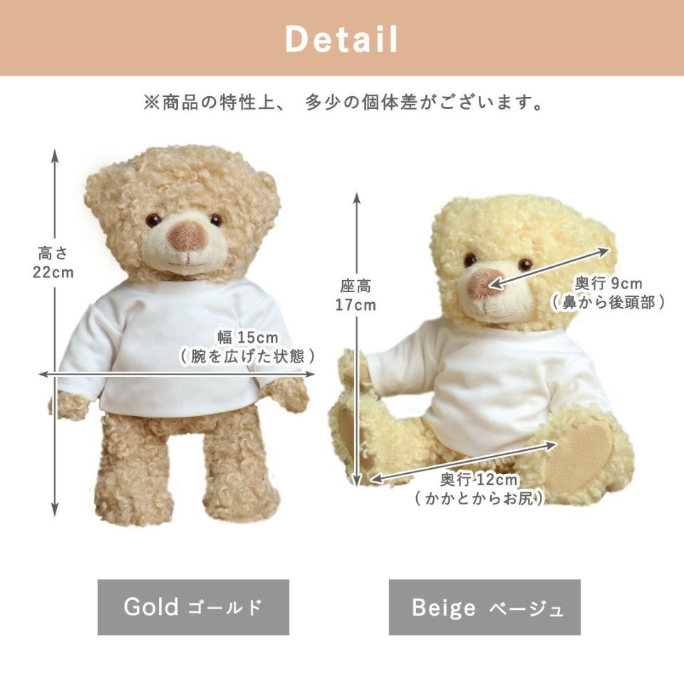 大切な“瞬間”を、ふわふわのぬいぐるみに詰め込んで── 世界にひとつだけの「フォト&メッセージ テディベア」 永遠を誓った結婚式。 お子さまの満面の笑顔。 おじいちゃんとお孫さんの心あたたまる1枚。 そんな「大切に飾りたい写真」に、お名前や記念日、心を込めたメッセージを添えて、 ふわふわのぬいぐるみがそっと思い出を包み込みます。 ■ 写真と文字が入る、オリジナルTシャツ テディベアが着ているTシャツには、 お気に入りの写真と一緒に、お名前・日付・メッセージなどを自由にプリント可能。 世界にひとつの、“思い出を飾るぬいぐるみ”としてお届けします。 ■ 本格仕様のクラシカルテディベア 首・手足にはジョイント入り。 手をあげたり、合わせたり、お座りポーズにしたり、 お好きなポーズで写真を飾ることができます。 クラシックな雰囲気がありながら、どこかやさしさを感じる特別なベアです。 ■ ギフトとしてそのまま渡せる安心仕様 テディベアは丁寧にラッピングしてお届け。 無料で熨斗(のし)もお付けしますので、 そのままプレゼントとして渡すことができます。 ■ こんなシーンにおすすめ ・結婚祝い・結婚記念日 ・お子さまの誕生日や出産祝い ・祖父母へのプレゼント ・送別記念、退職祝い “思い出”を形にして贈る、心あたたまるテディベア。 あなたの大切な気持ちを、そっと、ずっと、そばに。