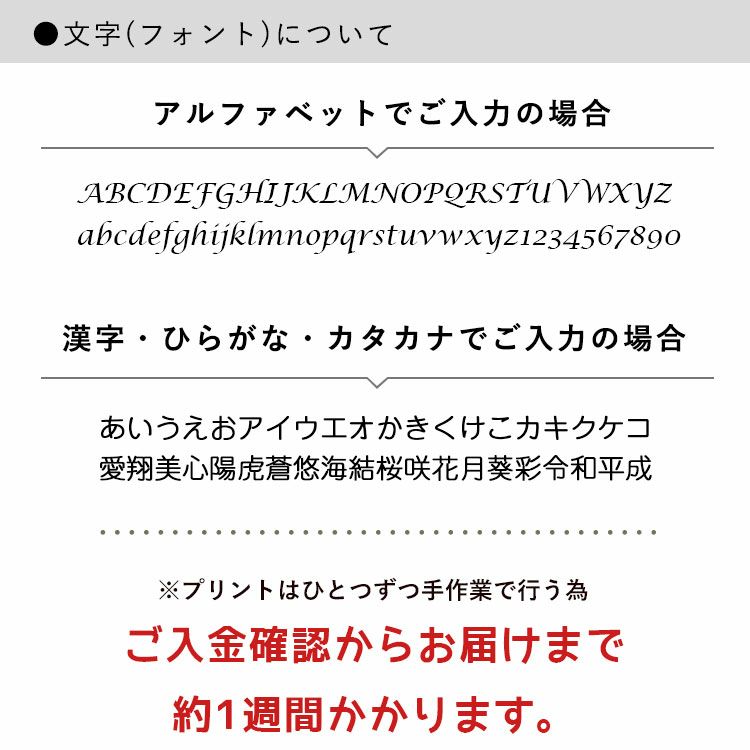 ●最大文字数以上ご入力されますとプリント文字が小さくなり綺麗にプリントできません。ご注意くださいませ。