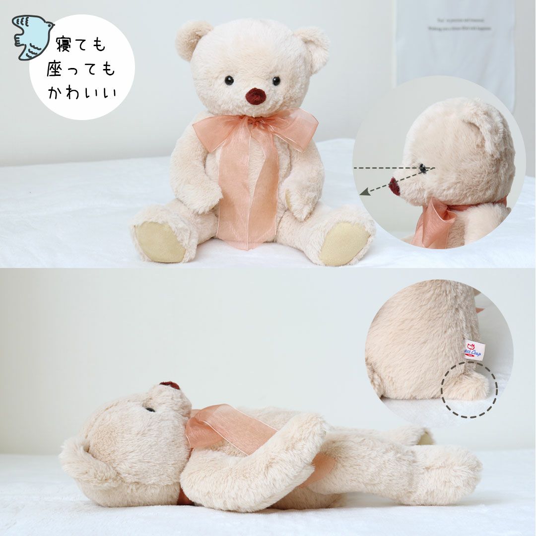 身長約40cmのテディベアは、しっかりとしたサイズ感で抱き心地抜群。ボリューム感のあるフォルムが魅力で、インテリアとしても存在感を放ちます。 ぬいぐるみとしてはもちろん、大きなぬくもりを感じられるので、贈り物や特別な日のギフトにも最適です。