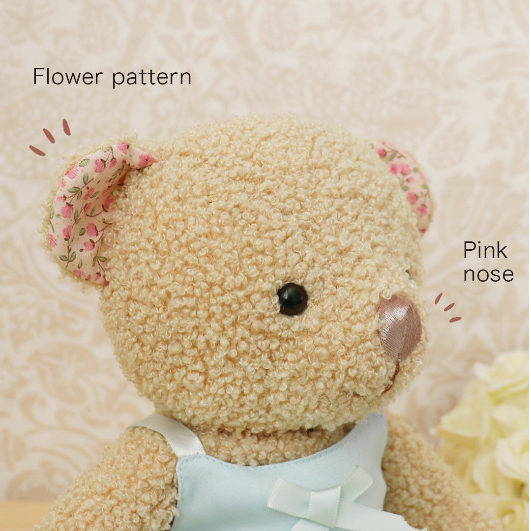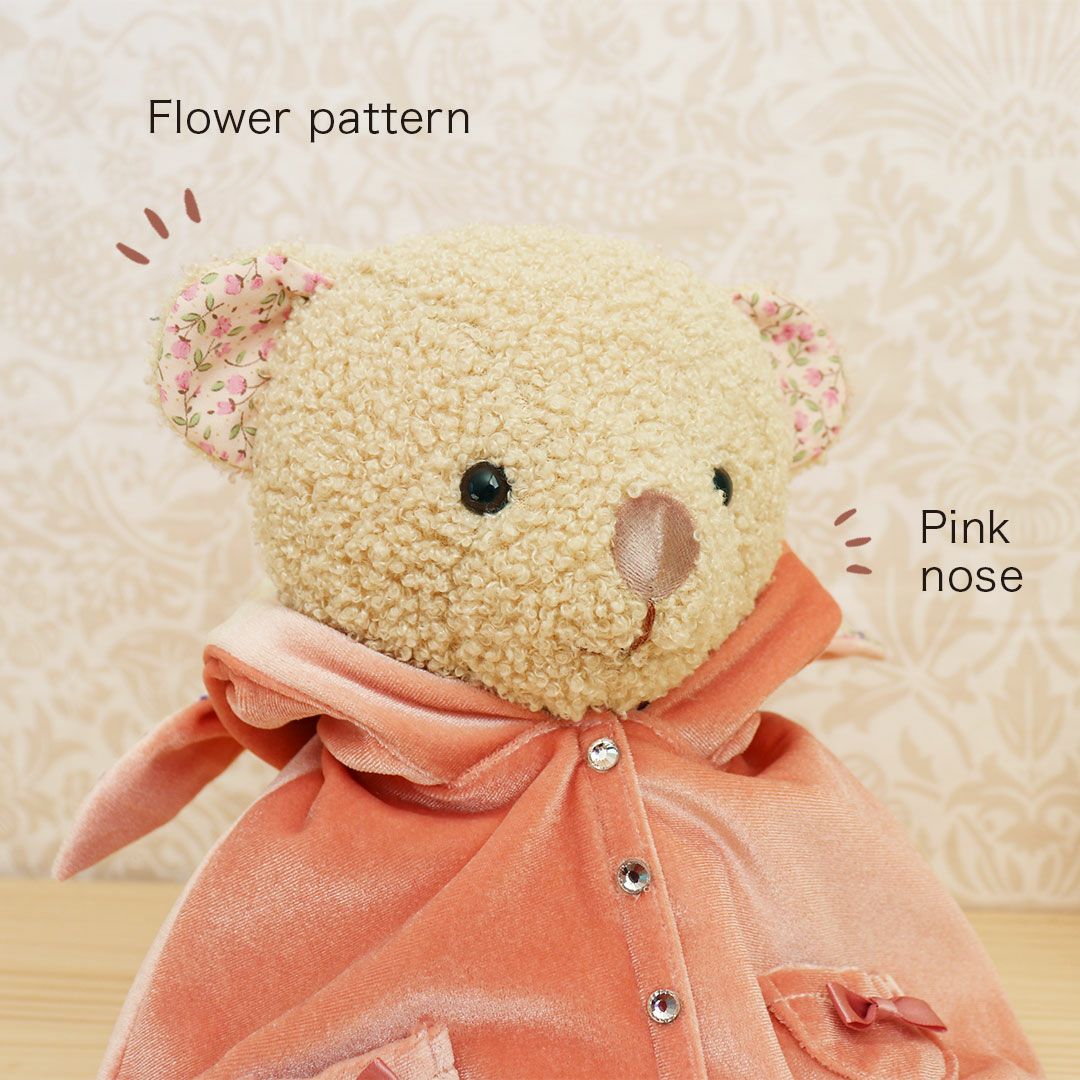 ピンクの鼻が優しい表情を引き立てる、ふわふわの柔らかい質感が魅力のオシャレキッズテール。ナチュラルなブラウンのボディカラーは、甘さの中にも上品さがあり、インテリアにも馴染む落ち着いた雰囲気に仕上げました。かわいらしさと洗練されたデザインを兼ね備えた特別なテディベアです。