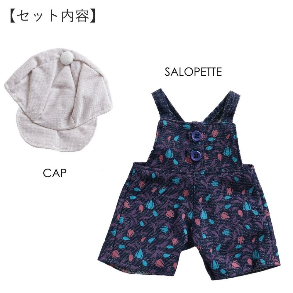 【サロペット】身幅10.5cm、着丈16cm、ワタリ6.5cm、股下3.5cm【帽子】頭周り22cm