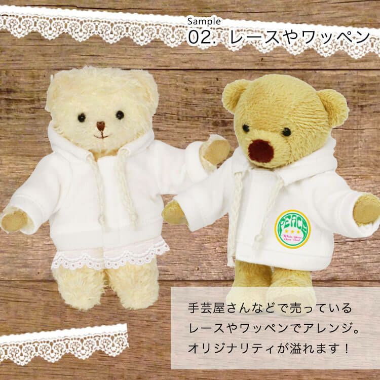 ●テディべアをご一緒にご購入頂いた場合にも、着せ込んでラッピングをするようなサービスは行っておりません。着せる楽しさも味わって頂ければと思います。何卒ご了承の程宜しくお願い致します。
