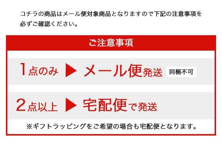 ご注意事項 ●こちらの商品は、1点までメール便配送可能です。2点以上お買い上げの方は宅配便での配送になります。