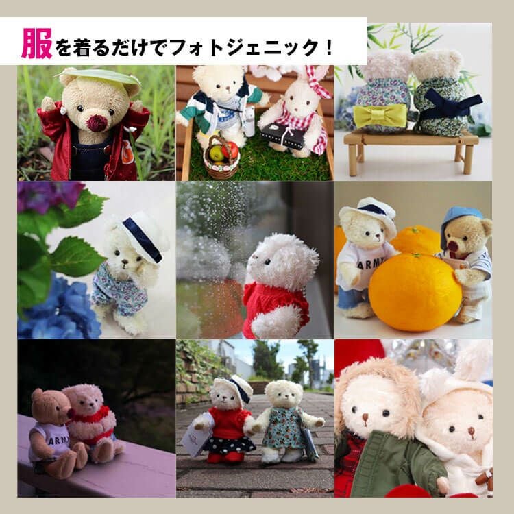 あなたのベアはちょっぴりやんちゃな男の子?それともおしゃれな女の子?ベアに服を着せるとより一層個性を出すことができます。