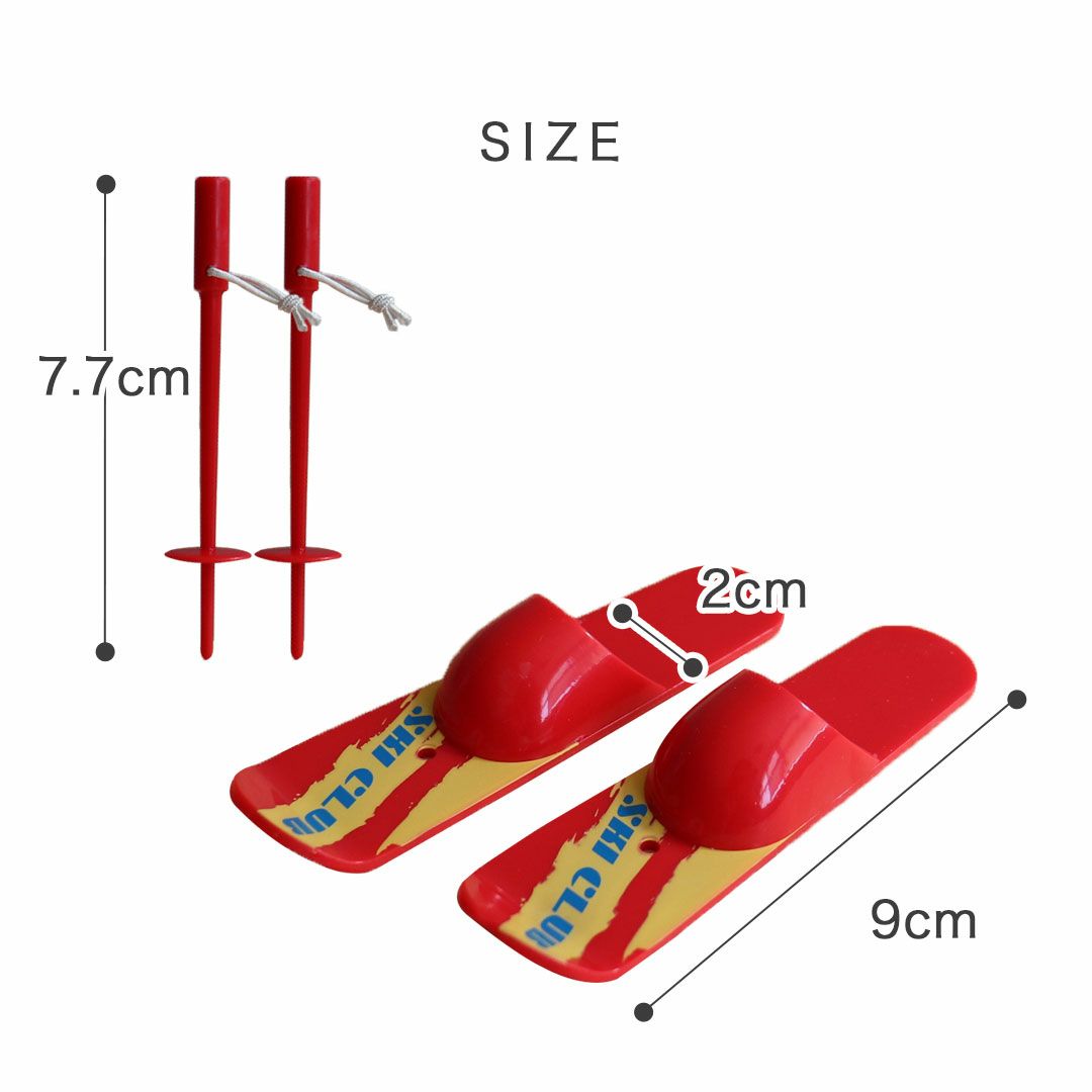 サイズ [スキー]長さ9cm×幅2cm [ストック]長さ7.7cm