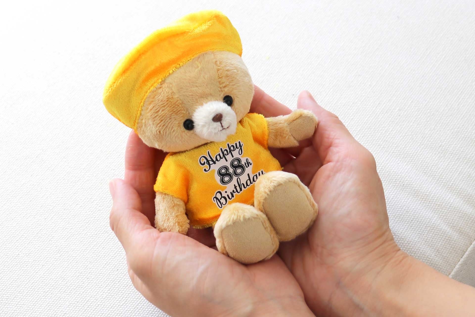 手のひらサイズのテディベアが長寿をお祝い。思わず笑顔になるかわいらしさ!
