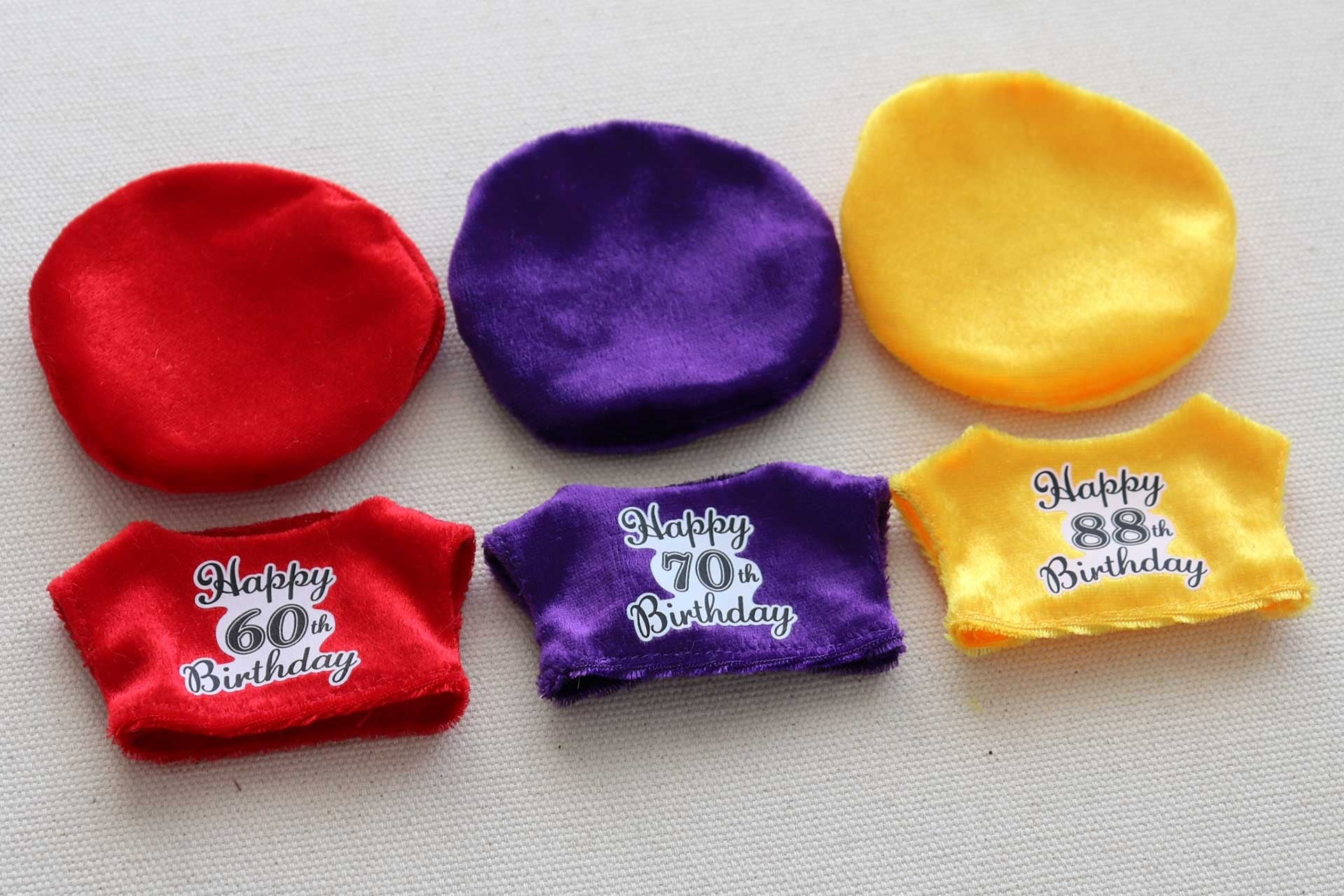 - お祝いにあった色のバースデーシャツとベレー帽を着用