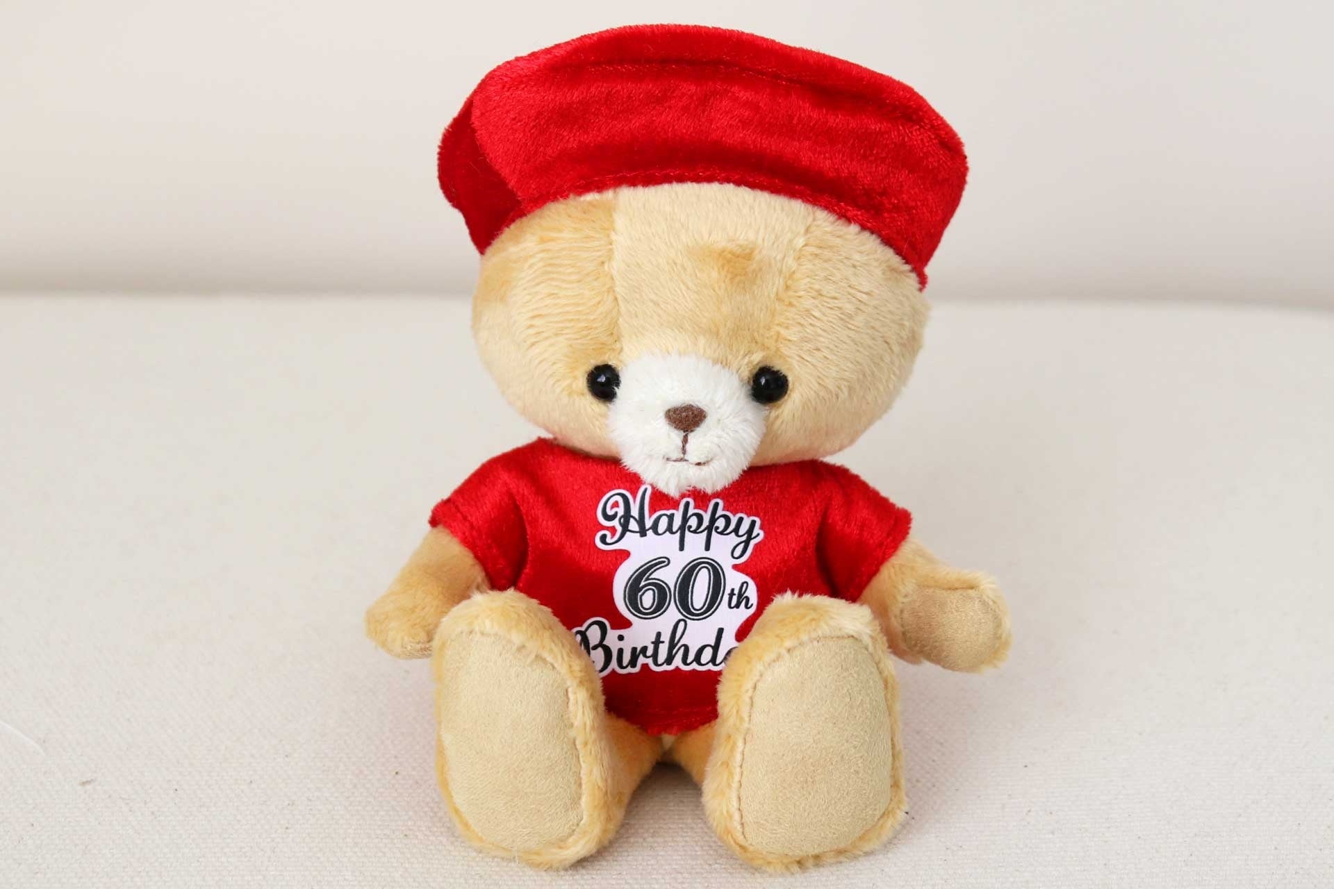 「元気長寿ベア」はお祝いにあった色のバースデーシャツとベレー帽を着用。長寿祝いらしさを残しつつ、おしゃれに長寿の誕生日をお祝いします。