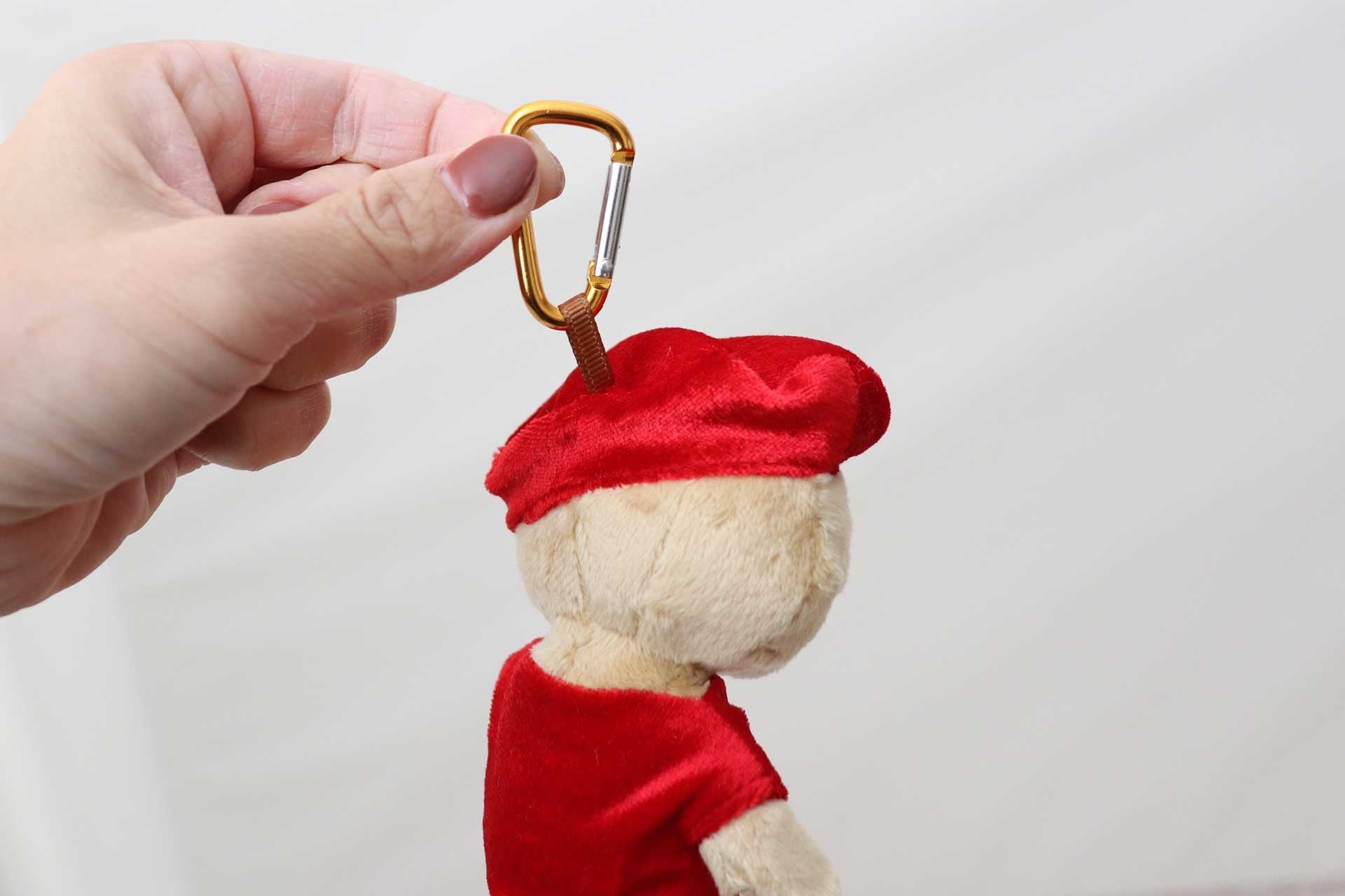 着脱が簡単なカラビナがついているので、いつのもお出かけバッグやリュックサックにつけて、散歩や旅行など、どこでも一緒にお出かけできます。