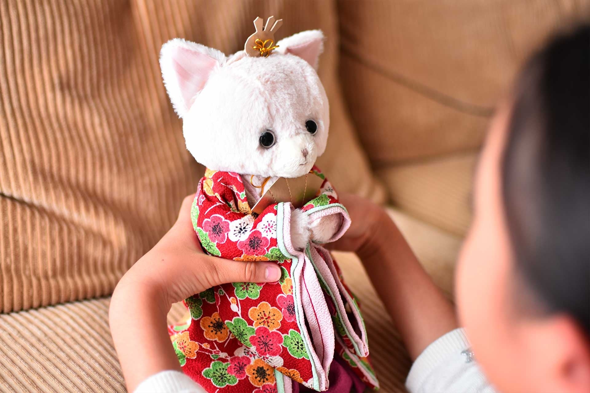 プティルウでは着物が映え、華やかさが際立つ「立ち雛(立ち姿のお雛様)」にこだわり、「ぬいぐるみのもつ柔らかな温かさはそのままで立つ」ぬいぐるみを開発しました。