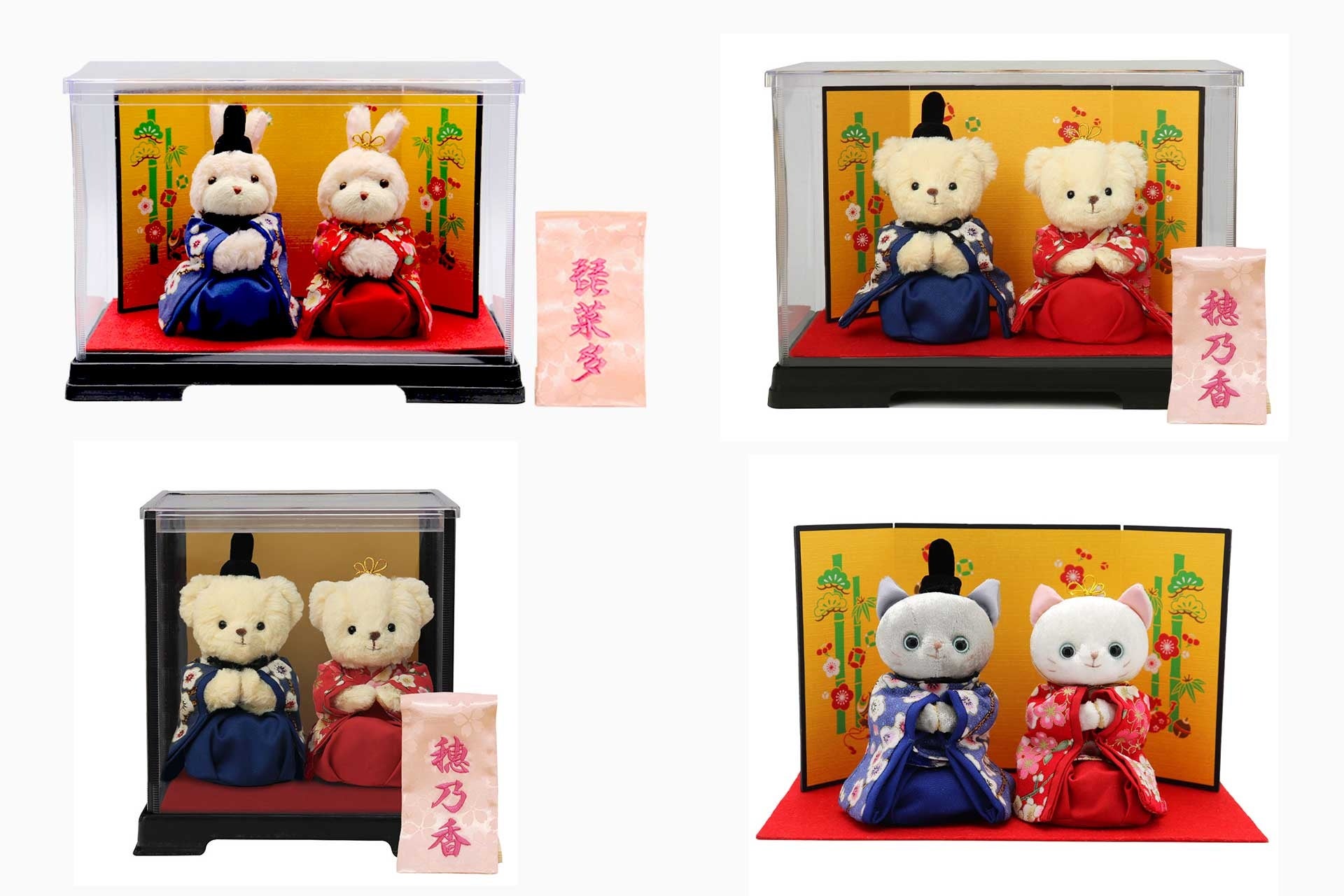 コンパクトサイズのぬいぐるみのお雛様は、初節句のお祝いはもちろん、二人目の三人目のお子様のお祝いや、大人の方のマイお雛様、メインのお雛様とは別にリビングや玄関などいつも目にする場所に飾る2つ目のお雛様としてもおすすめです。